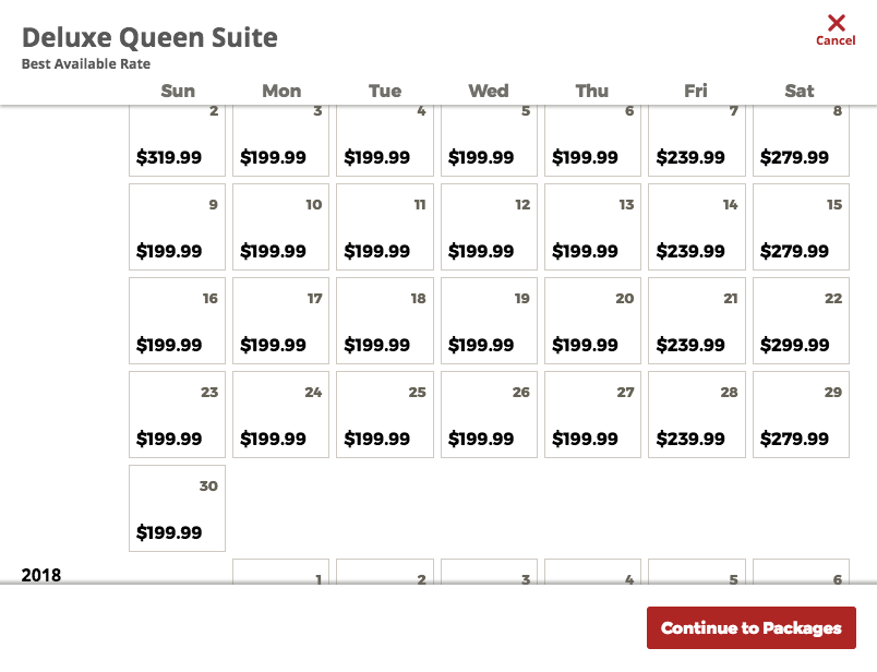 What you'll find when looking for rooms is a rather handy rate calendar allowing you to search through a month to find the best priced nights:
