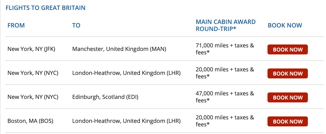 No, that's not a typo; 20,000 miles for a round-trip award flight from the US to London.