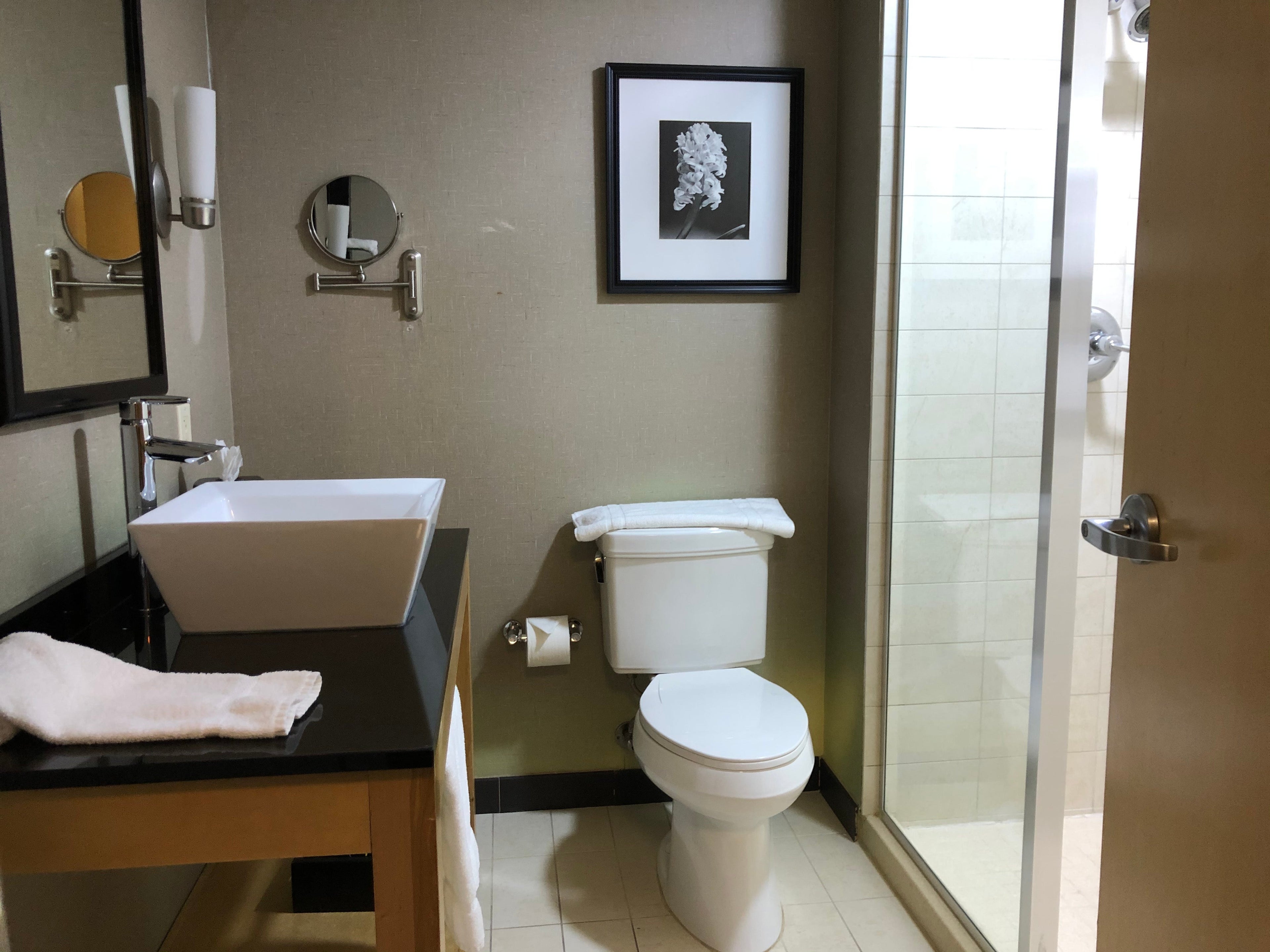 The bathroom was modern and clean but only had a shower instead of a tub (a problem for some families with young ones).