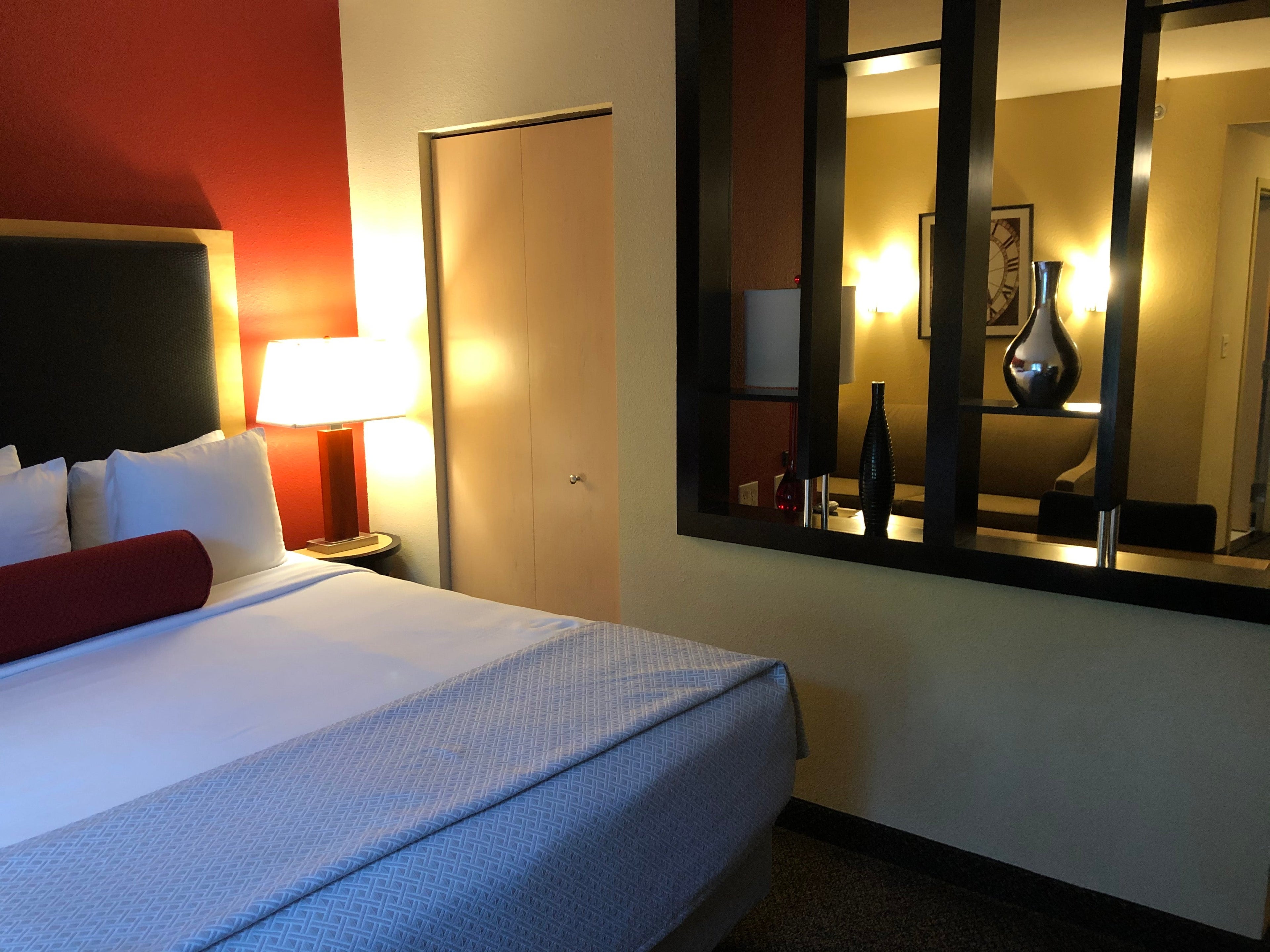 The separate sleeping area had a king size bed and a larger, 60-inch TV. The partition with the desk made this a favorable layout for me compared to a Hyatt Place for a traveling family.