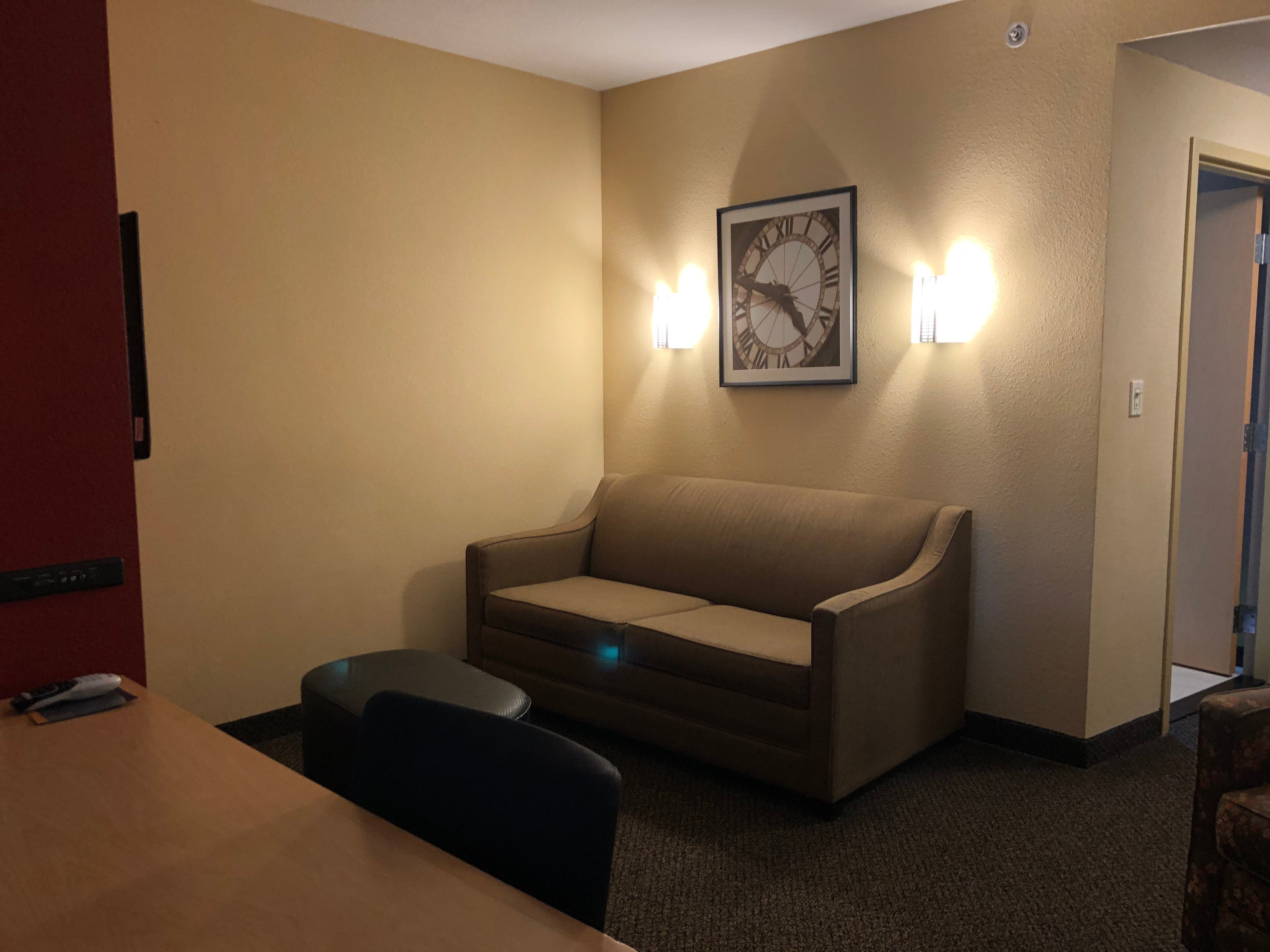 My room had a sitting area with its own TV and sleeper sofa that was partially separated from the rest of the room.