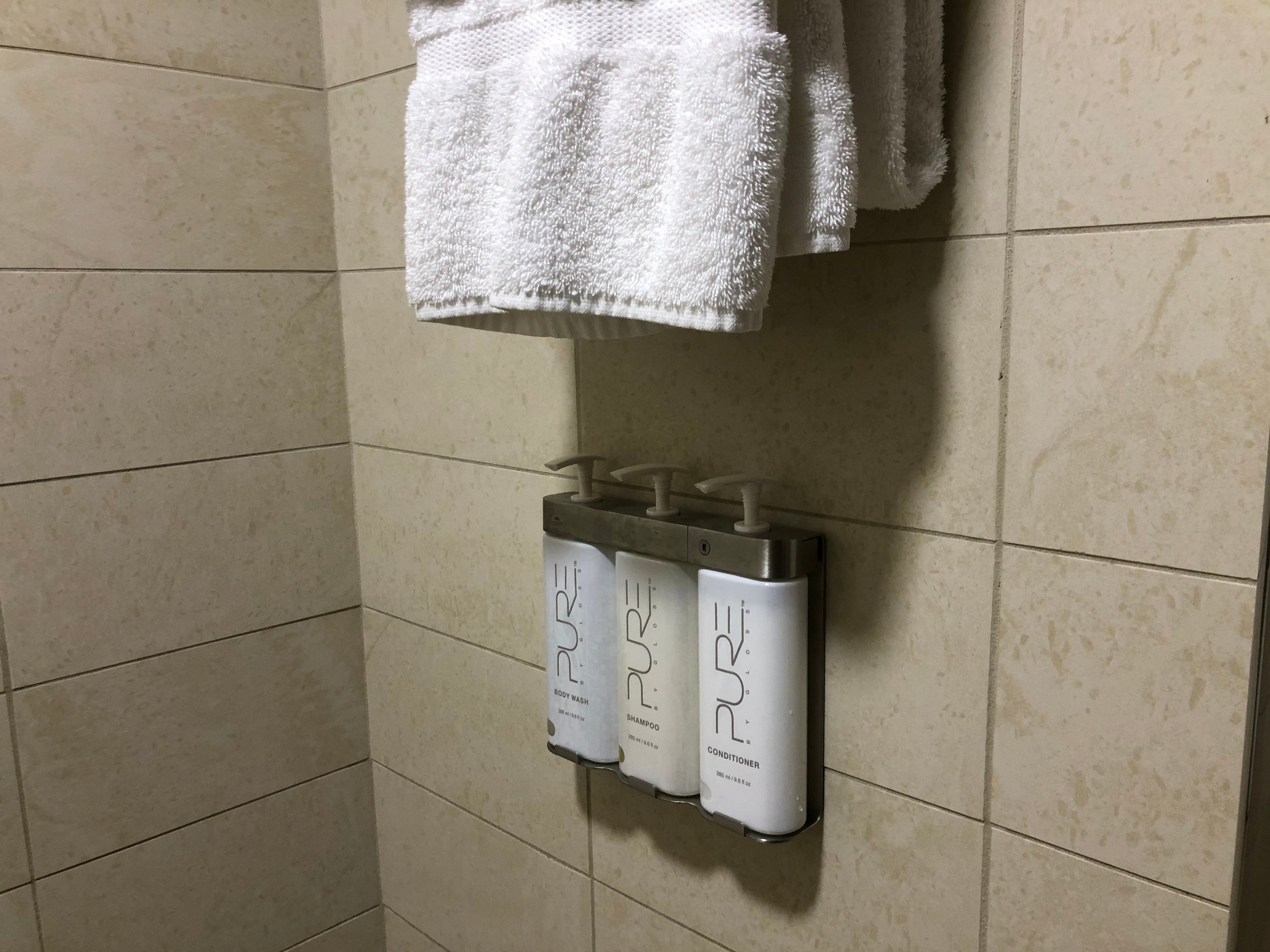 The hotel also unfortunately uses my my current pet peeve (bulk toiletries), though this setup with the anti-tamper lock was the first I could not instantly get open.