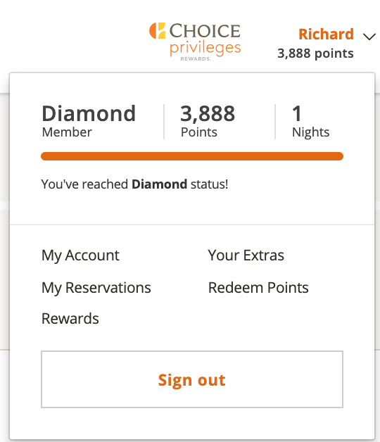 That's a $42 return on a $104 rate — and that doesn't include any monetary value of the Choice Diamond status I now hold (though without real-world experience, I'm unsure what that dollar value would currently be). I at least scored an up-front 40% rebate on this stay, I'll have another 8,000 bonus points after just one more Choice stay and I can enjoy it all as a Diamond member.