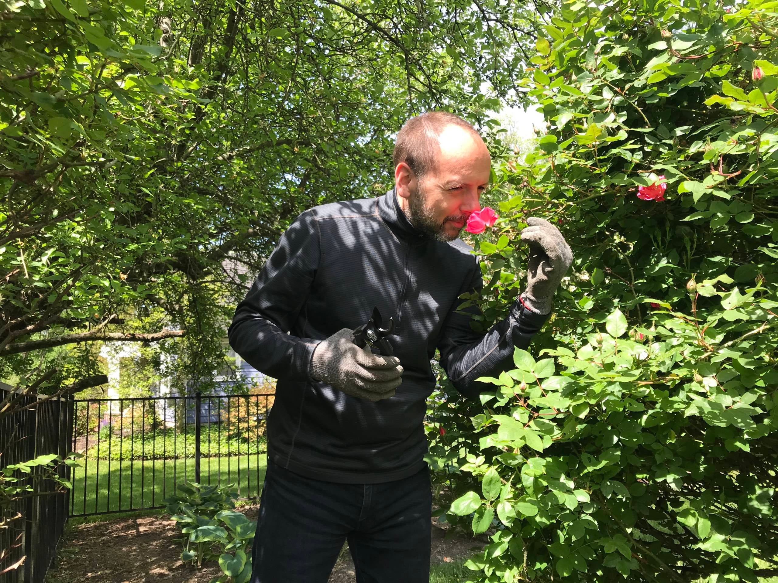In short, I'm being forced to stop and smell the roses — literally as well as figuratively, I will add. Our rose bushes are just showing the first signs of blooming.