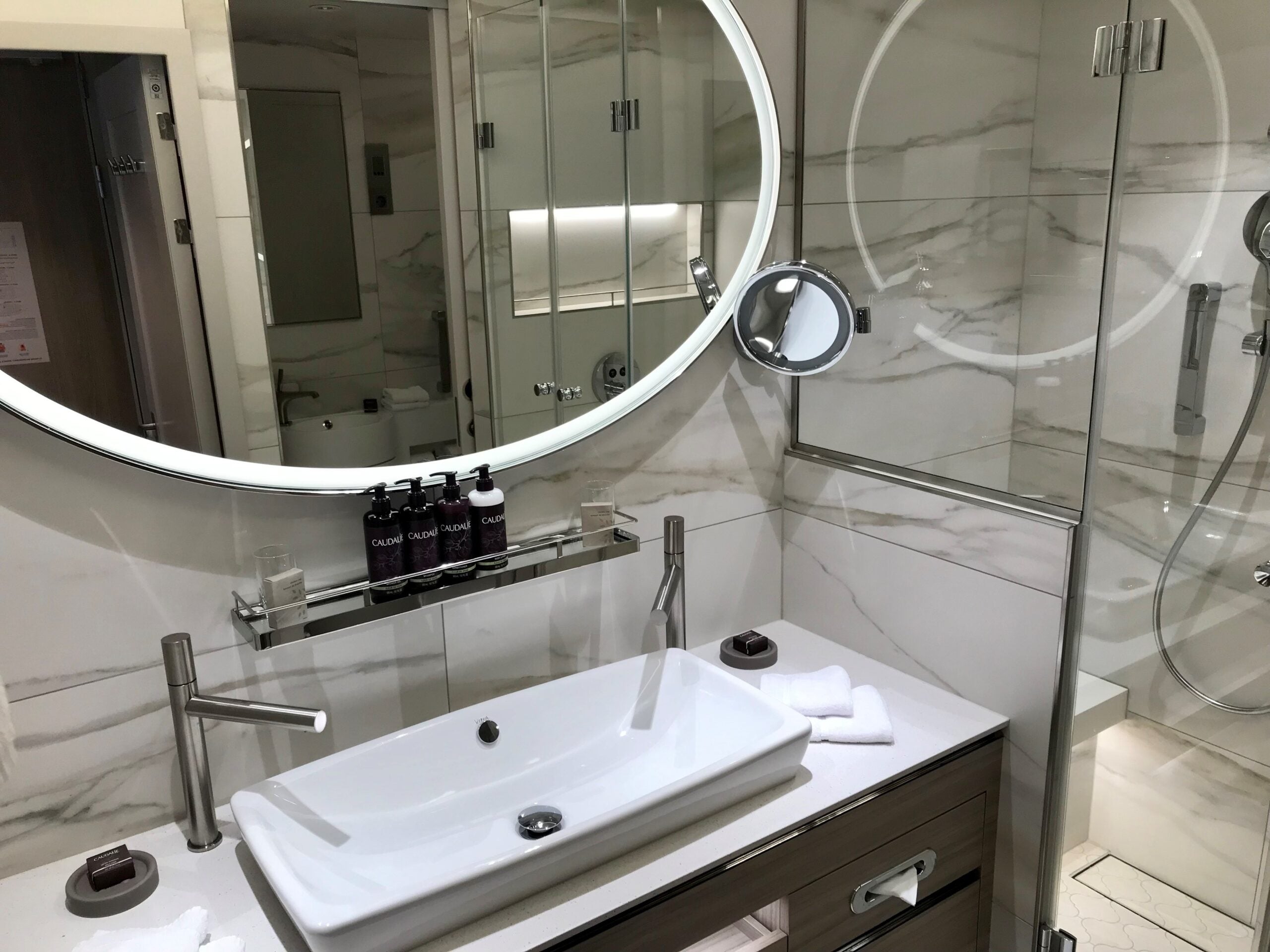 Cabin bathrooms at this level can be found on traditional luxury ships operated by several luxury lines. But for an expedition ship, this sort of high-end design is rare.