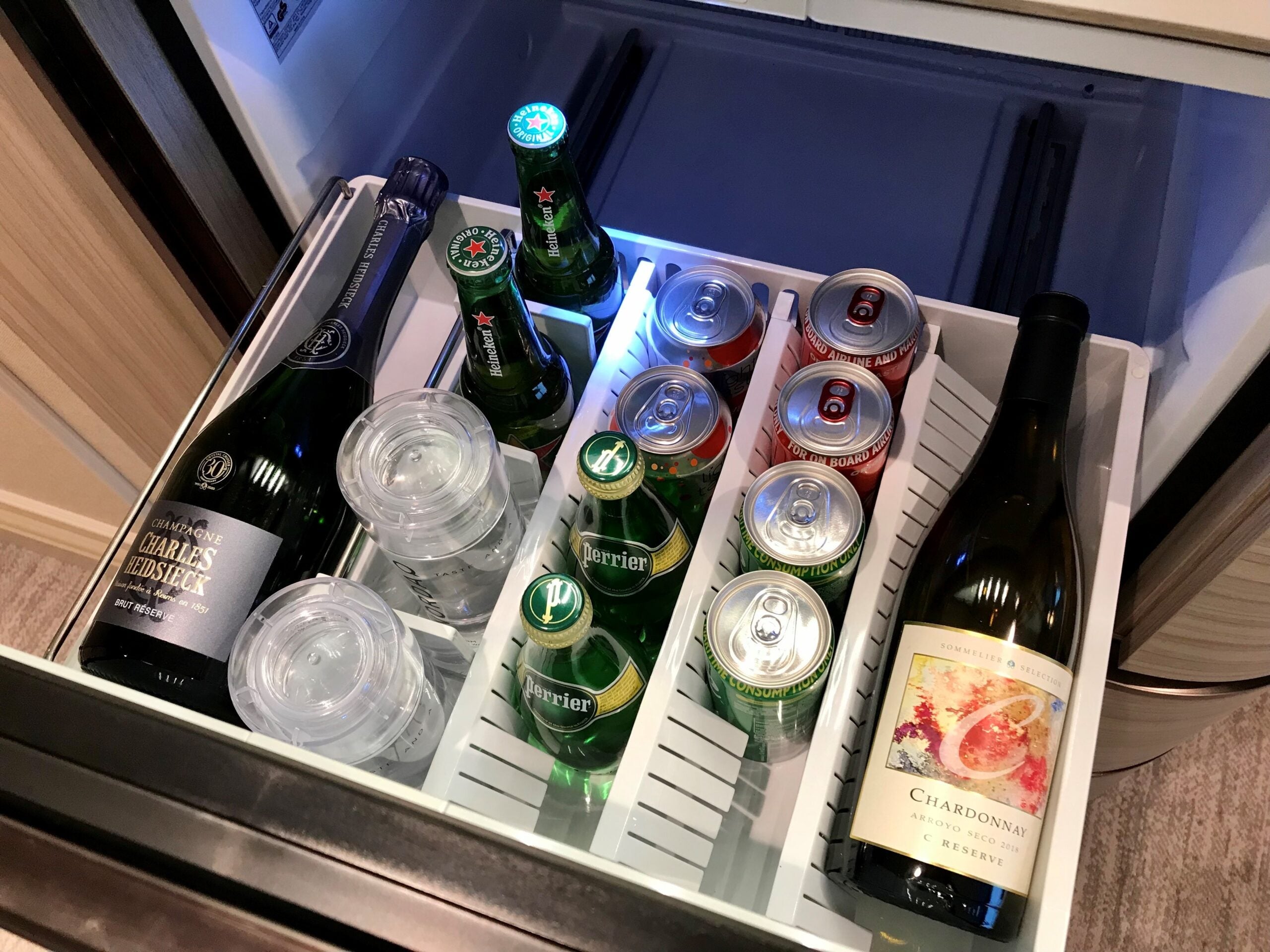 There was the stunning, fold-out bar fully stocked with complimentary wines, Champagne, beer and sodas (some of it chilled in a hidden, pull-out refrigerator drawer).