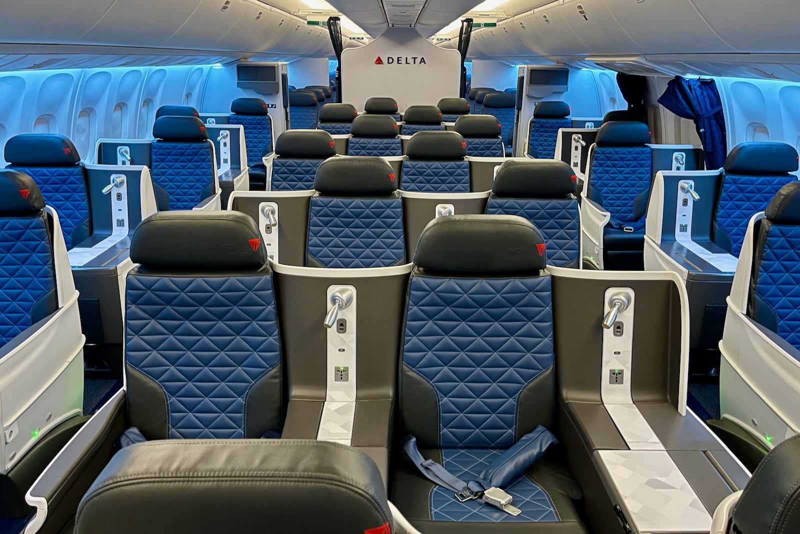 - Class 2: lie-flat seat and separation from the cabin with a thick curtain to provide darkness and some sound mitigation