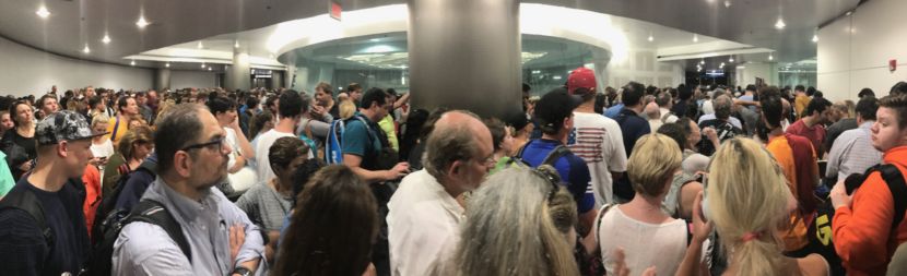 Even after systems started to come back online, the resulting backlog meant hours of delays for many international travelers. Users on Twitter reported over 1,000 people waiting in line for three or more hours at Miami International, and tempers flaring as people were packed into the waiting areas.