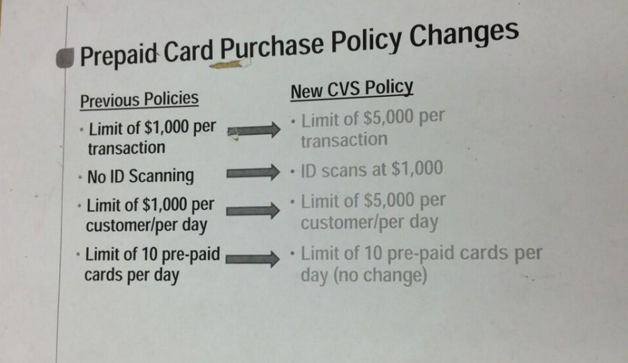 TPG Twitter follower @abiriff sent me the following photo he snapped at his local CVS with an employee memo about Prepaid Card purchases including Vanilla Reloads.