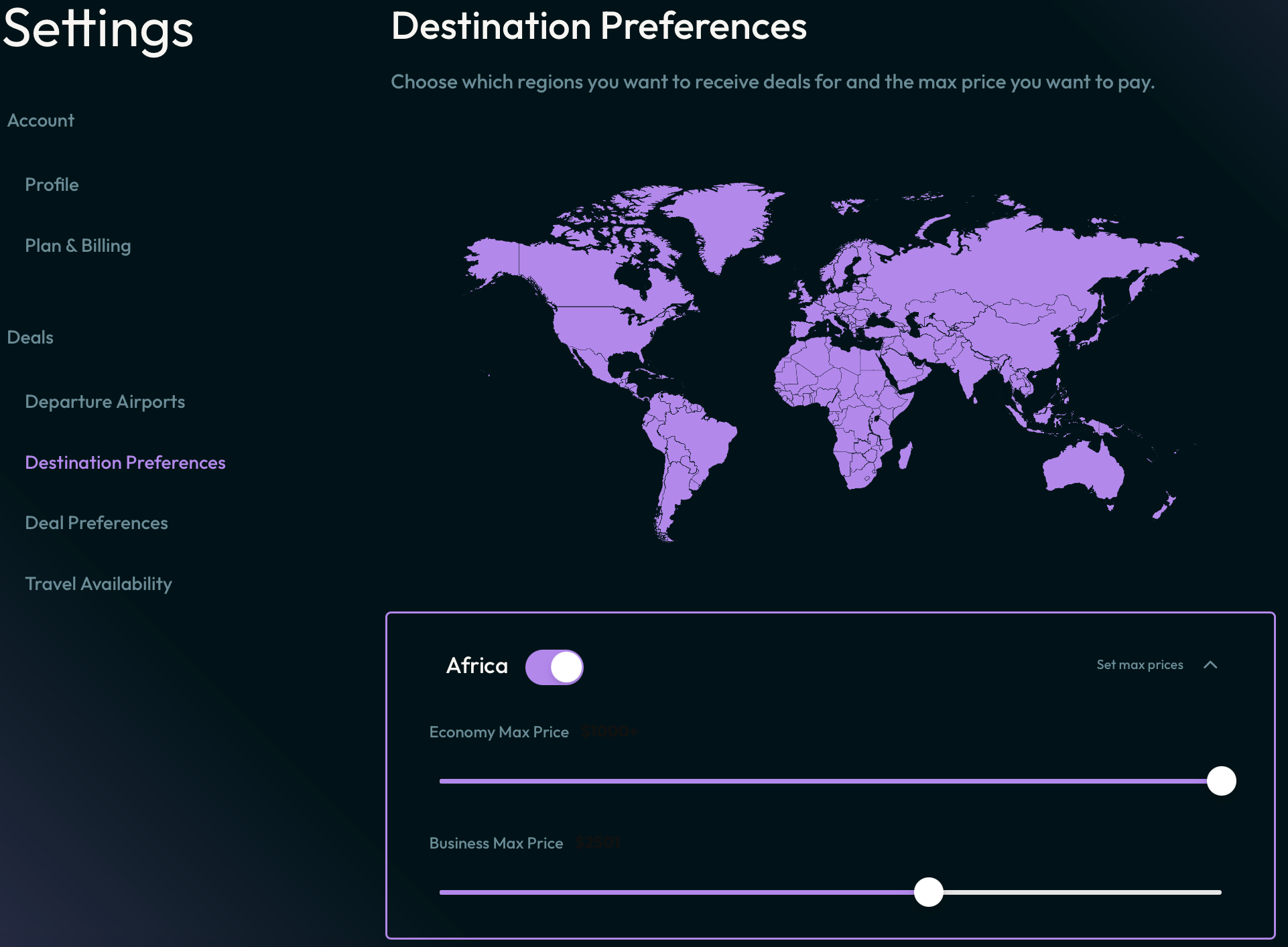 For example, you can tailor your deal preferences to narrow down the deal suggestions you receive, not just by selecting your departure airport but also by choosing the destination and the maximum price you want to pay.