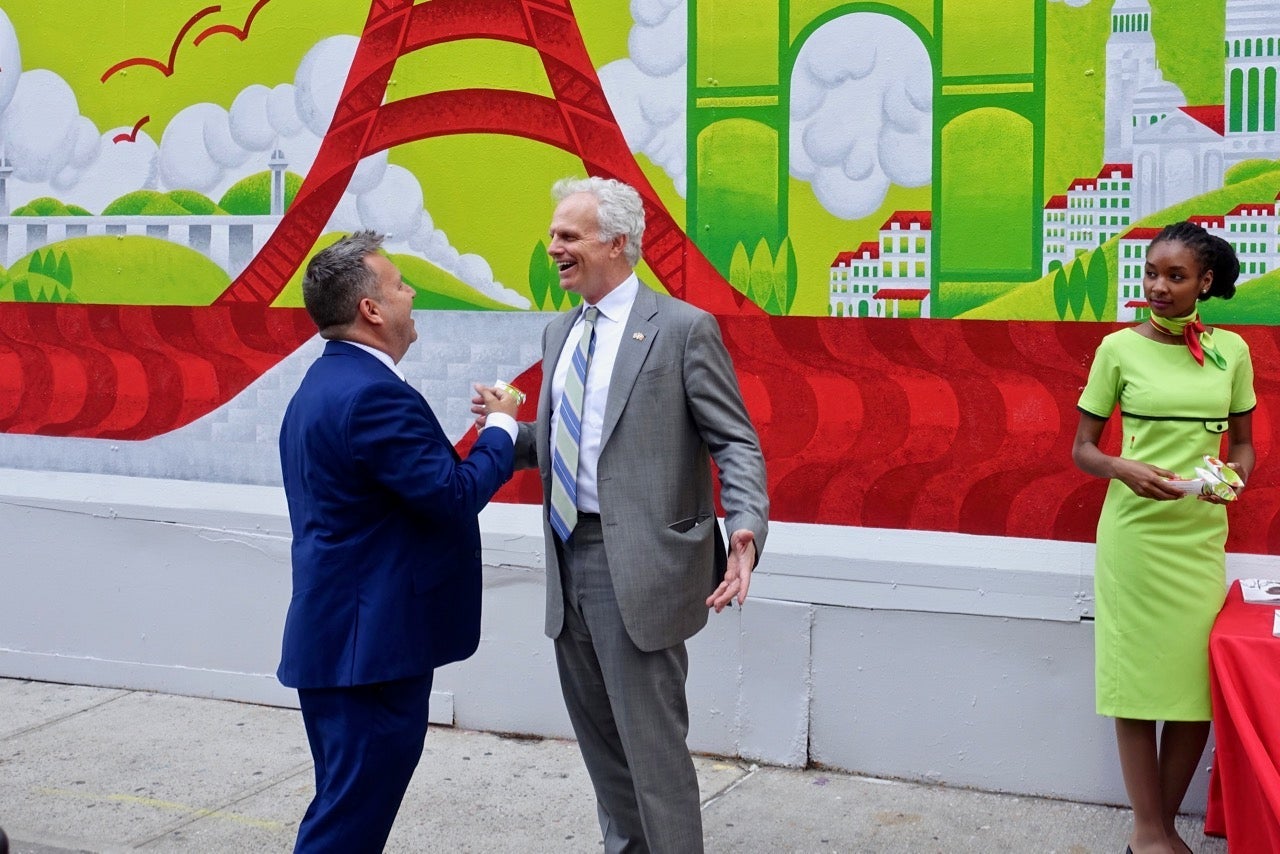 To mark its 50th anniversary at New York's JFK airport, the airline hosted a public "Aviation Geek Meet-Up" with David Neeleman, an airline legend and now co-owner of TAP Portugal. The event wasn't hosted at either of the New York area airports the airline serves, but rather an intersection in Brooklyn decorated with a festive mural that the airline is calling its "Stopover Corner" (an homage to the airline's stopover program). You can see the mural on display at the corner of Bogart and Grattan Streets for the next two months.