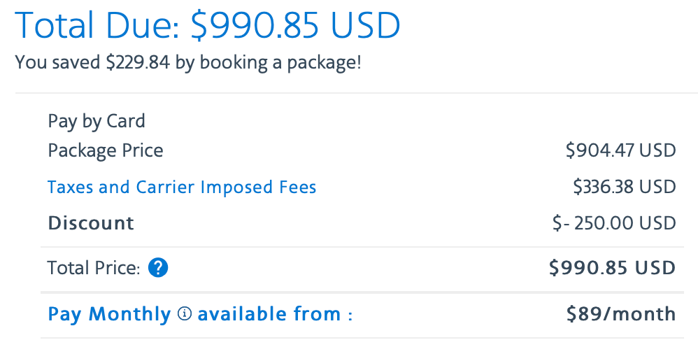 In contrast, here's what it looks like when trying to book this separately, with flights alone costing $871: