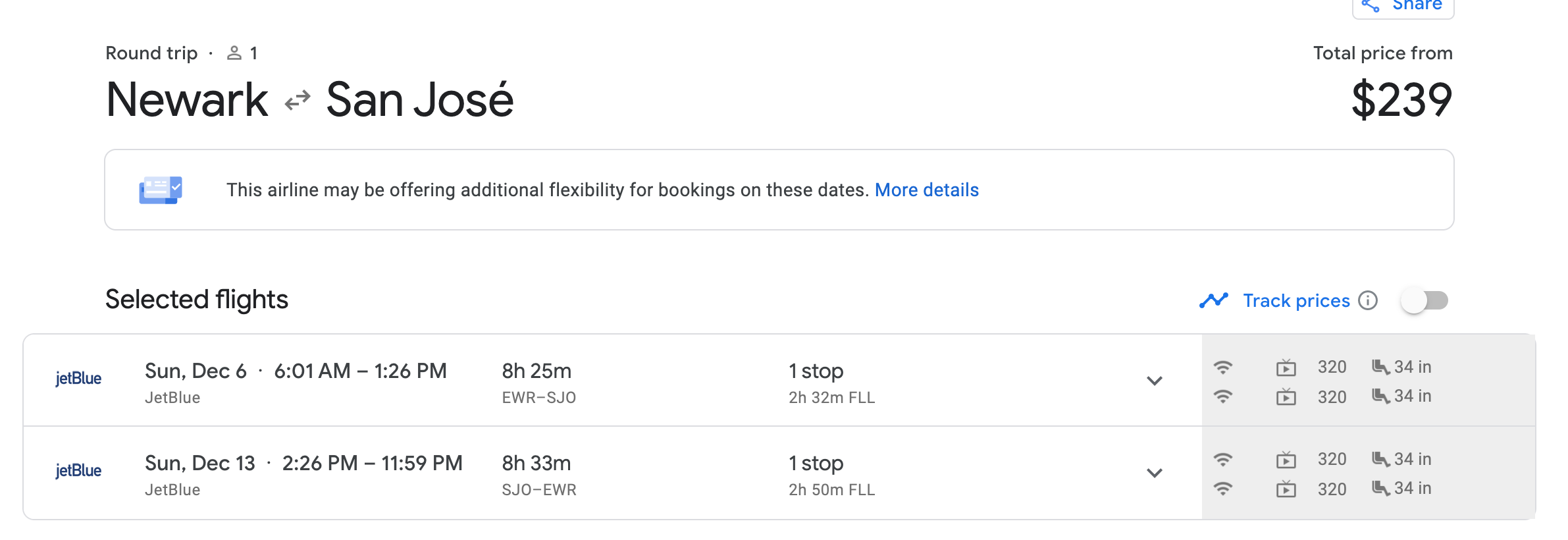 Newark (EWR) to San José, Costa Rica (SJO) for $239 round trip on JetBlue: