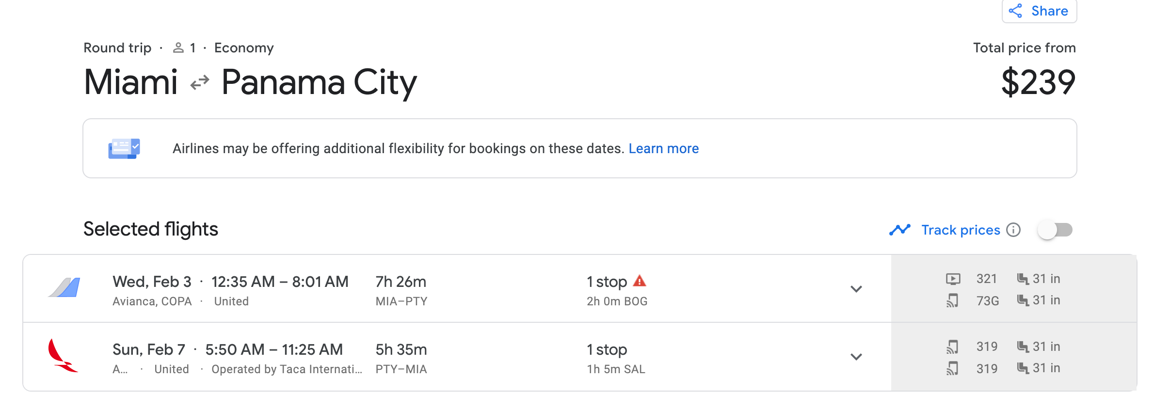 Miami (MIA) to Panama City, Panama (PTY) for $243 round trip on Star Alliance carriers:
