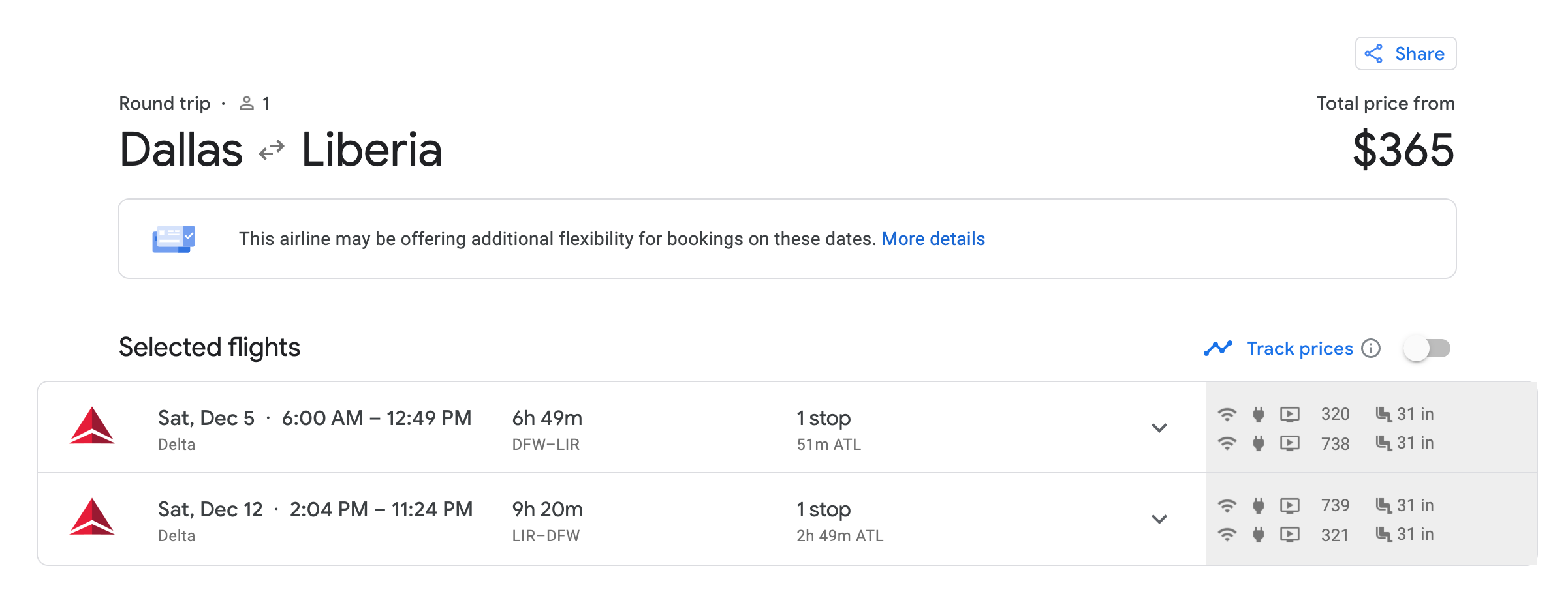 To search, head to Google Flights and enter your origin and destination cities. Scroll through the calendar function to find dates and prices that work for you. Finally, click through to book directly with the airline or through an OTA like Priceline or Expedia.
