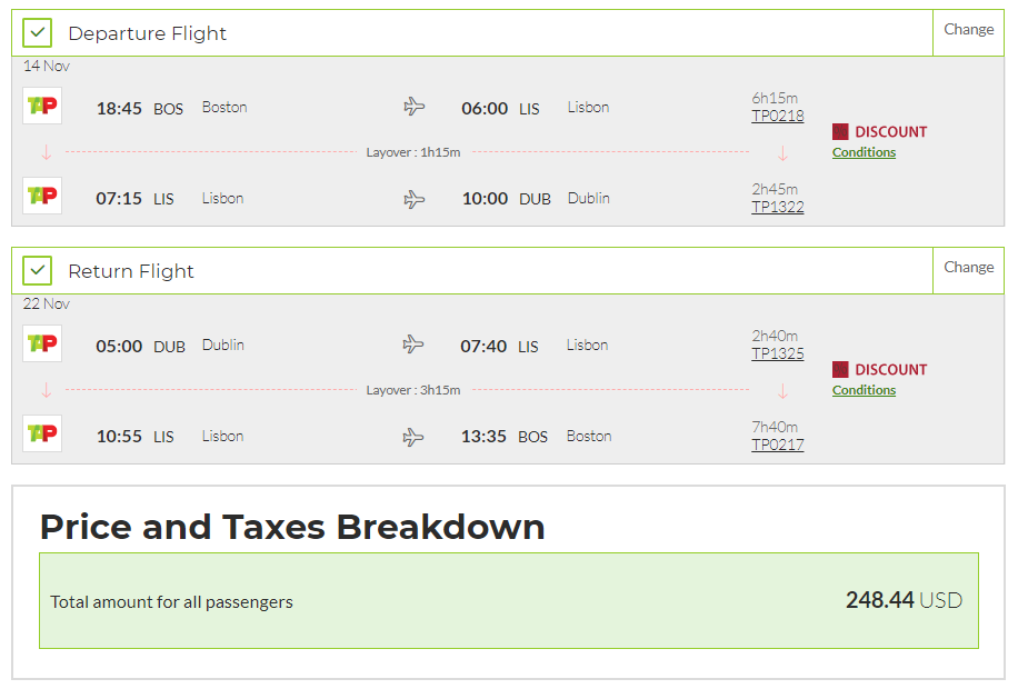 Boston (BOS) to Dublin (DUB) for $248 round-trip: