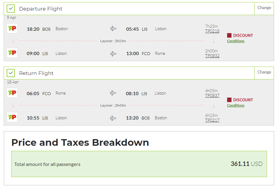 Boston (BOS) to Rome (FCO) for $361 round-trip: