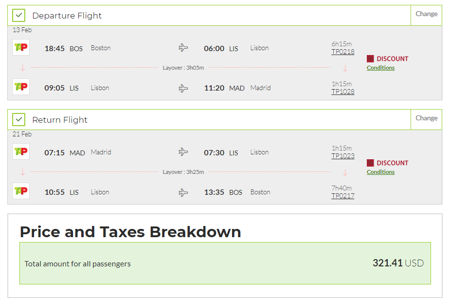 Boston (BOS) to Madrid (MAD) for $321 round-trip: