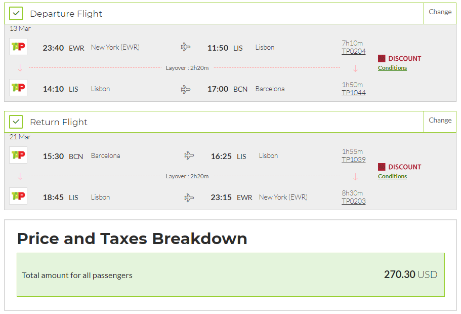 New York (EWR) to Barcelona (BCN) for $270 round-trip: