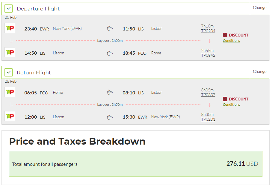 Airline: TAP Air Portugal/Icelandair/Norweigan/Iberia