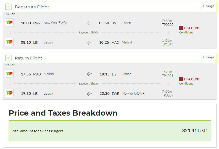 New York (EWR) to Madrid (MAD) for $321 round-trip: