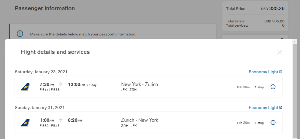New York (JFK) to Zurich (ZRH) for $335 round-trip: