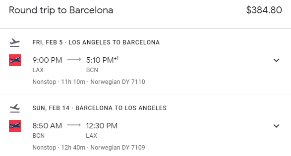 Los Angeles (LAX) to Barcelona (BCN) for $385 round-trip: