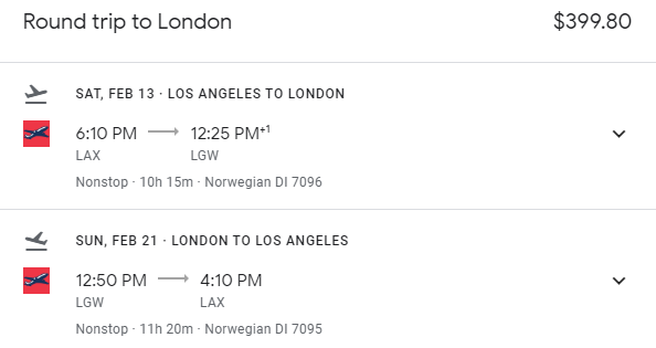 Los Angeles (LAX) to London (LGW) for $400 round-trip: