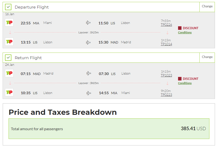 Miami (MIA) to Madrid (MAD) for $385 round-trip: