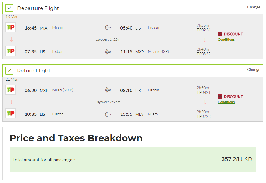 Miami (MIA) to Milan (MXP) for $357 round-trip: