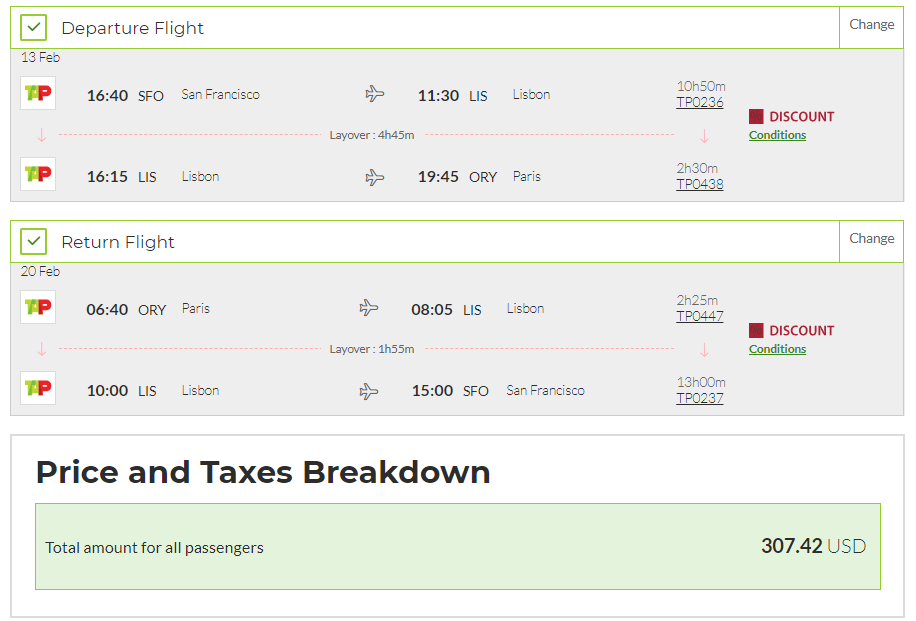 San Francisco (SFO) to Paris (ORY) for $307 round-trip:
