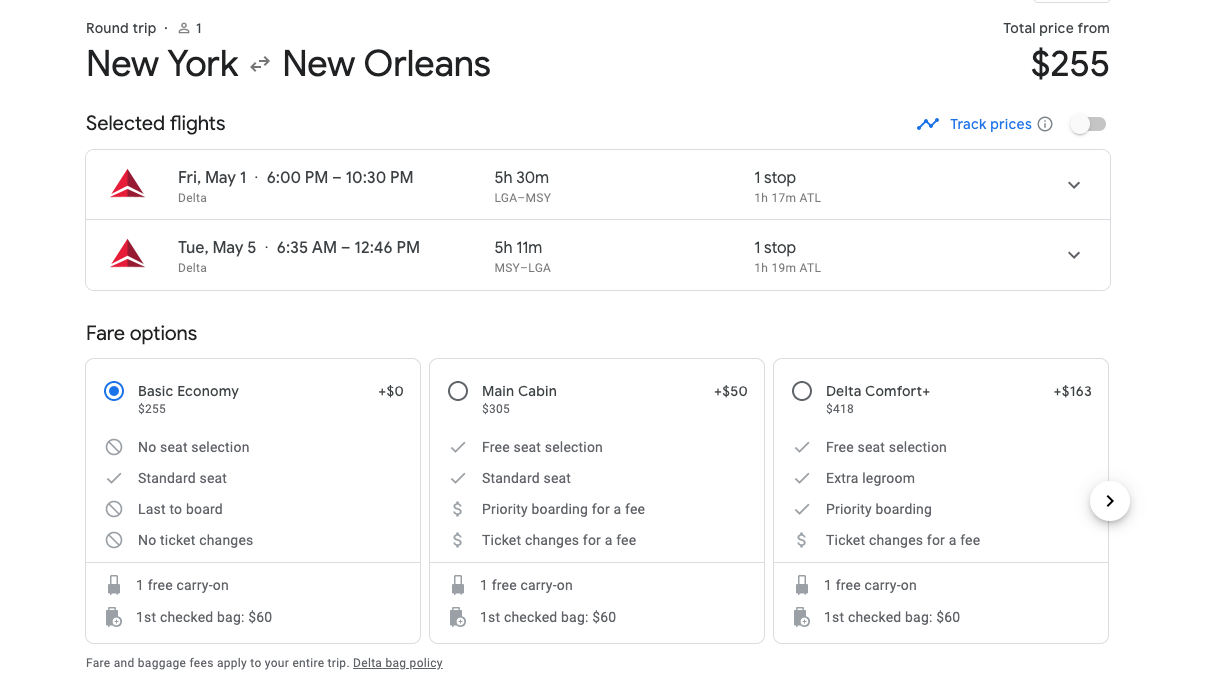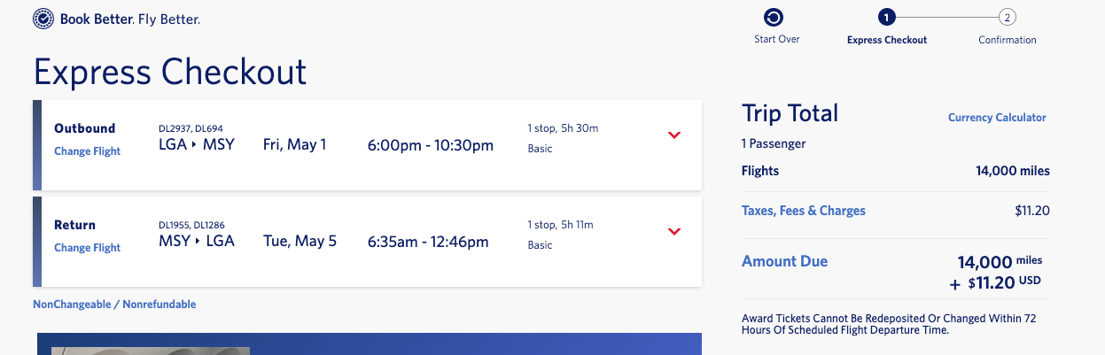 While it's in basic economy with a short layover in Atlanta, you'll get in with plenty of time to catch John Mayer jam out with Bob Weir, Mickey Hart and Bill Kreutzmann the following day. Just pay the rough equivalent of some Crawfish Monica in taxes and fees ($11.20) and you're golden.