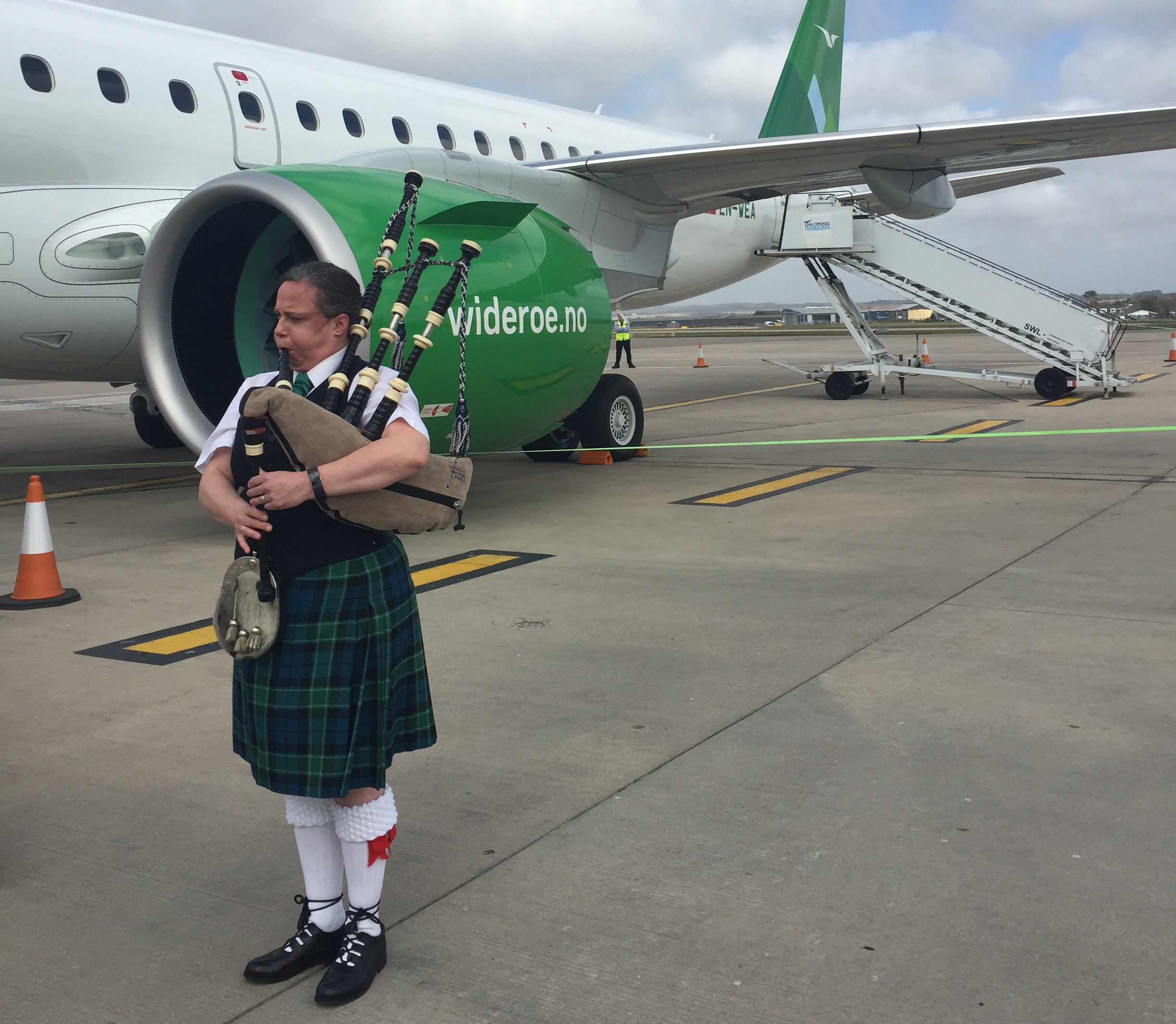 After stopovers in Recife (REC) and Las Palmas (LPA), the ferry flight from Brazil made one last stop in Aberdeen, Scotland (ABZ), in order to pick up journalists, staff members and other special guests for the short hop across the North Sea to Bergen (BGO).