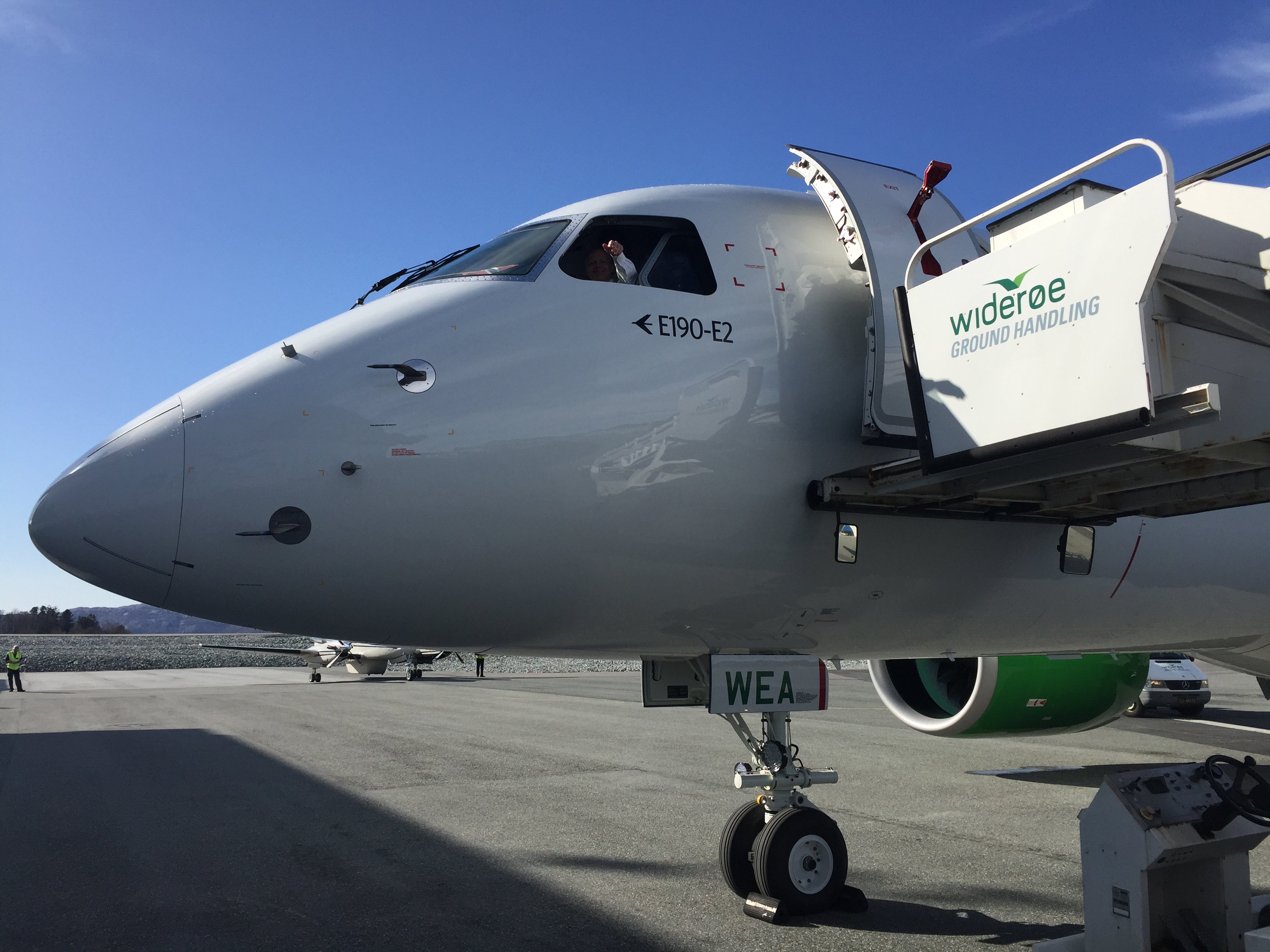 A little more than a week after it was officially delivered to its launch customer Widerøe, Embraer's first commercially operating E190-E2 has made it to its new home in Norway.