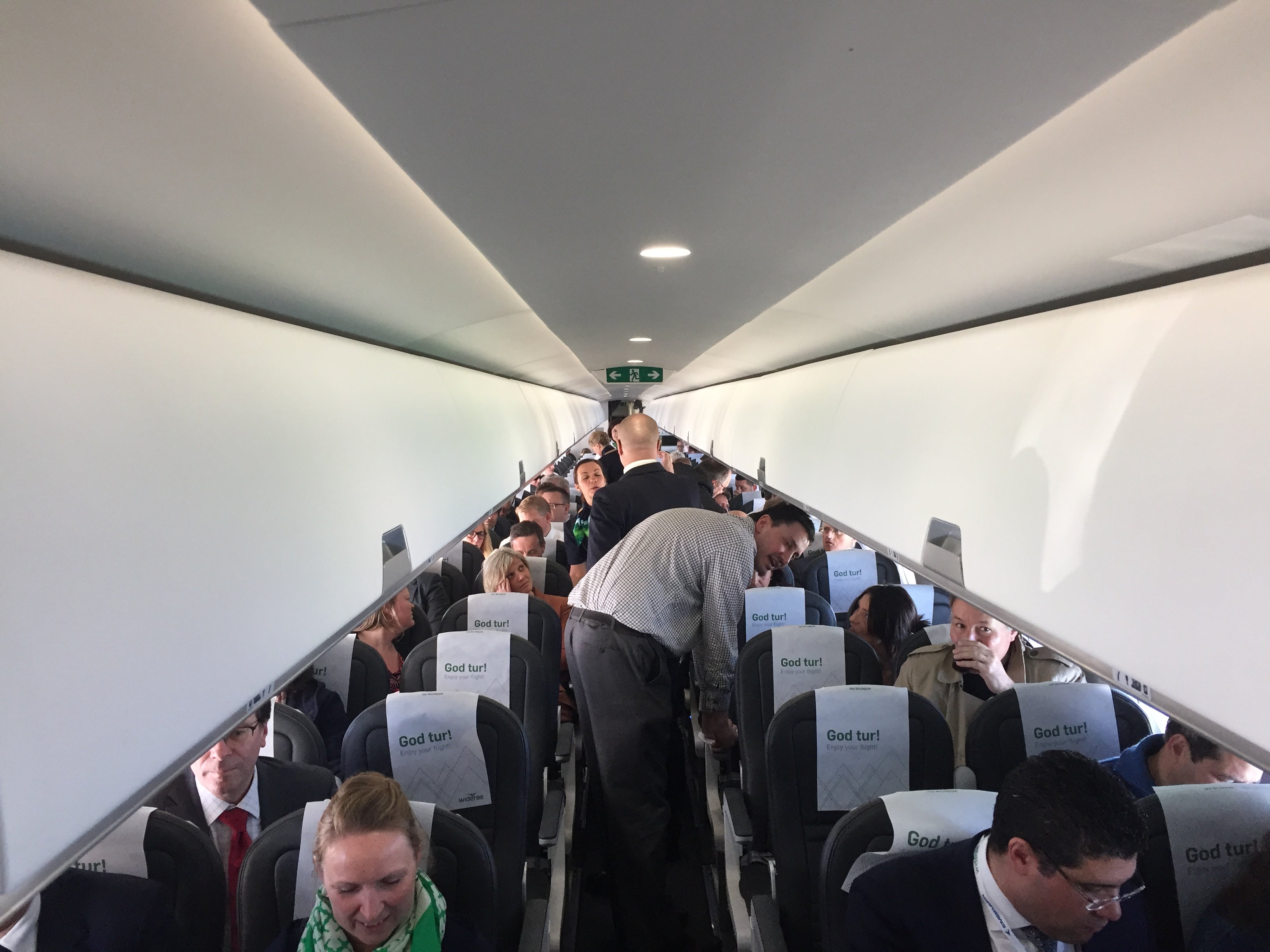 I was personally sitting next to one of the engines and, while it was possible to feel the powerful thrust of the Pratt & Whitney Geared Turbofan (GTF) engines upon take off, engine noise was never more than an afterthought. And during the press conference in Bergen after the flight landed, Embraer's executives even boasted about the E2 being the quietest aircraft in its category.