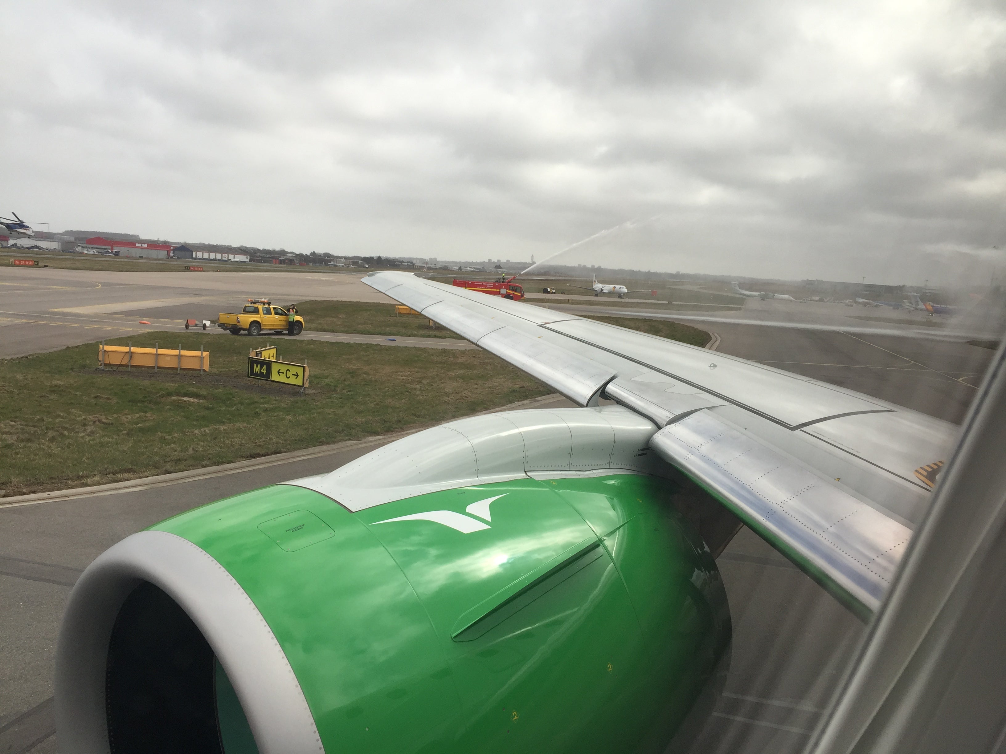 A small crowd and another water cannon salute were waiting for us at Bergen Flesland airport. Immediately after landing, we taxied to a quiet space at the edge of the facility, next to a large hangar that had been transformed into a temporary gala venue for the occasion.