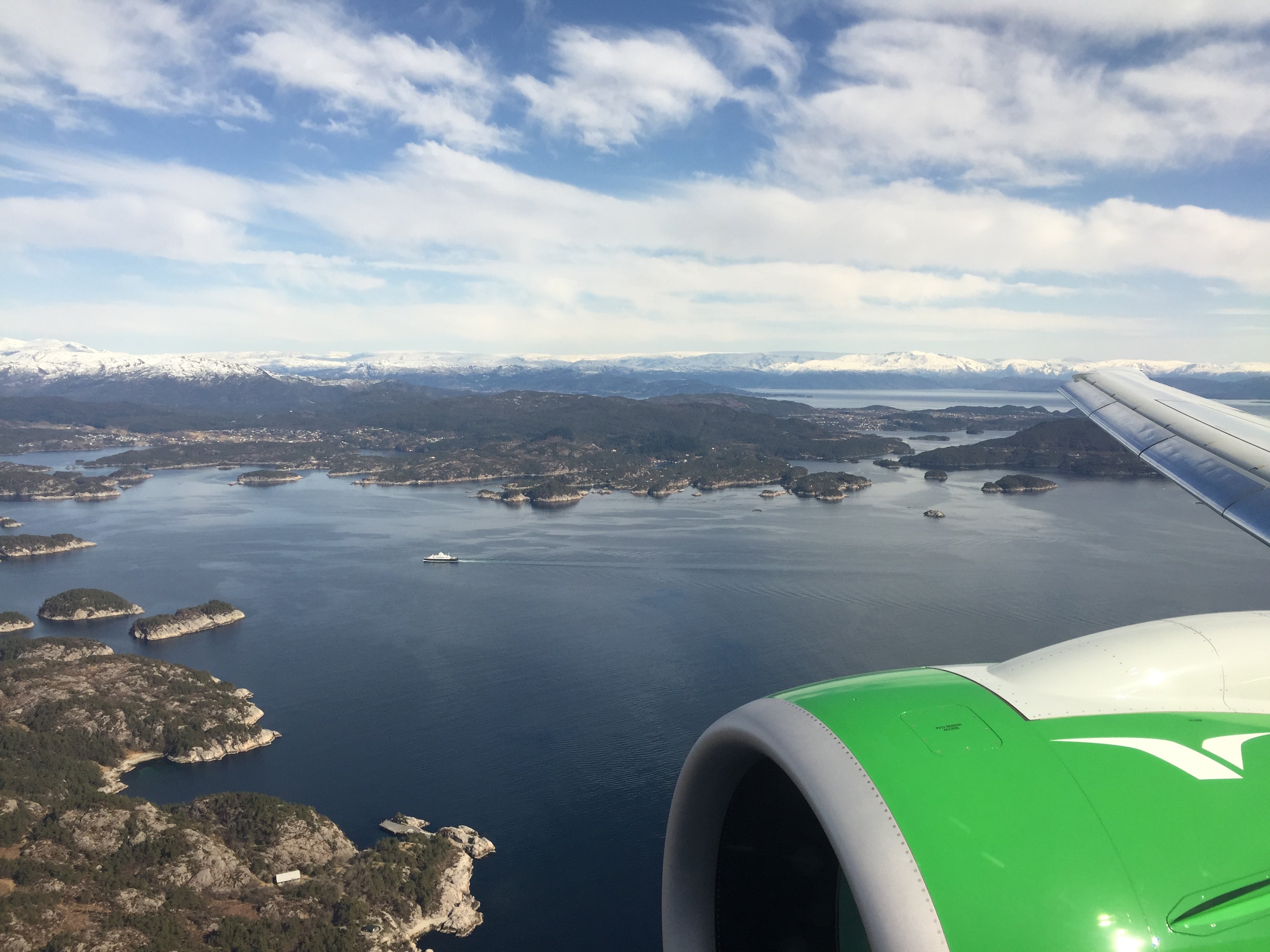 Once in the air, we hardly had time to down some sparkling wine before the dramatic scenery of the Norwegian coast became visible over the horizon.