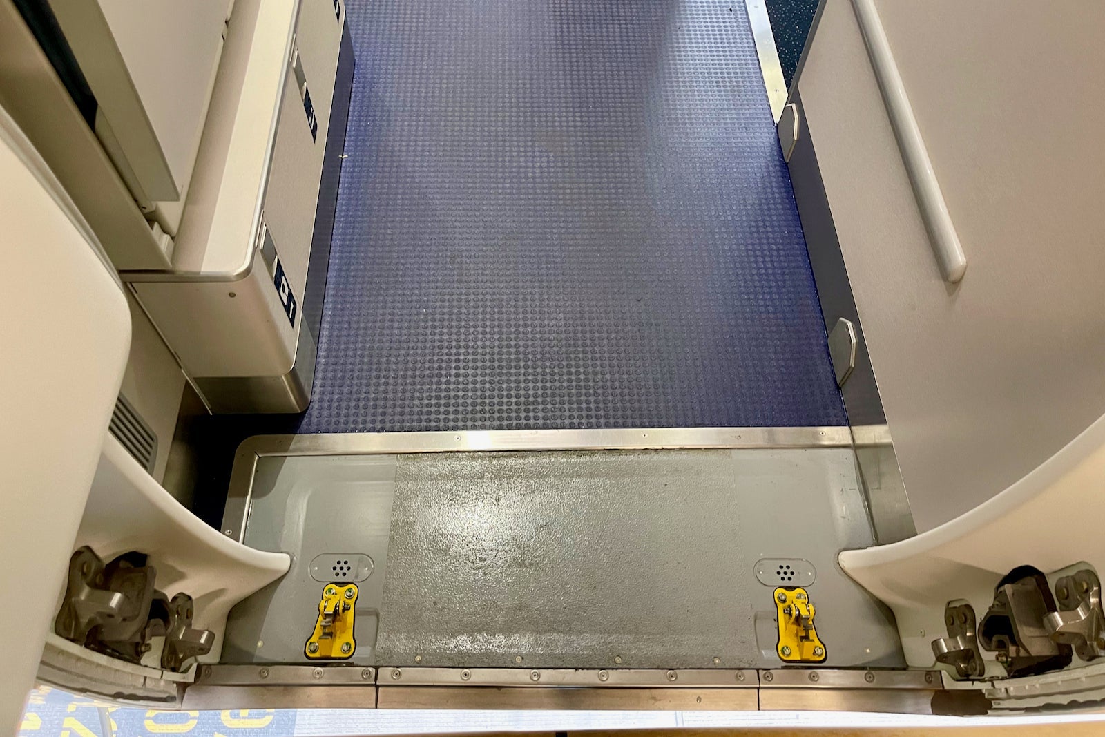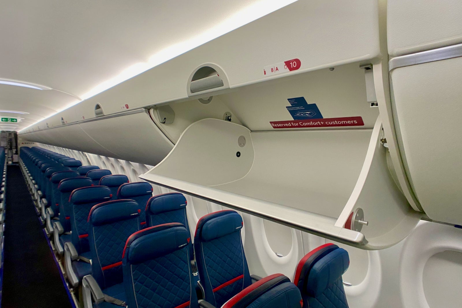 Upon entering the plane, flyers are greeted by a new rectangular Delta sign that's reminiscent of the entryway on the carrier's wide-body jets like the retrofitted Boeing 767.