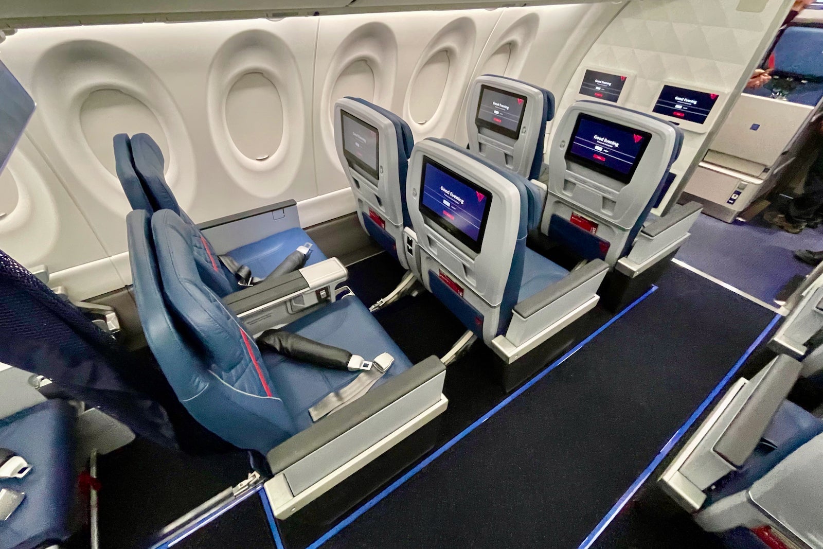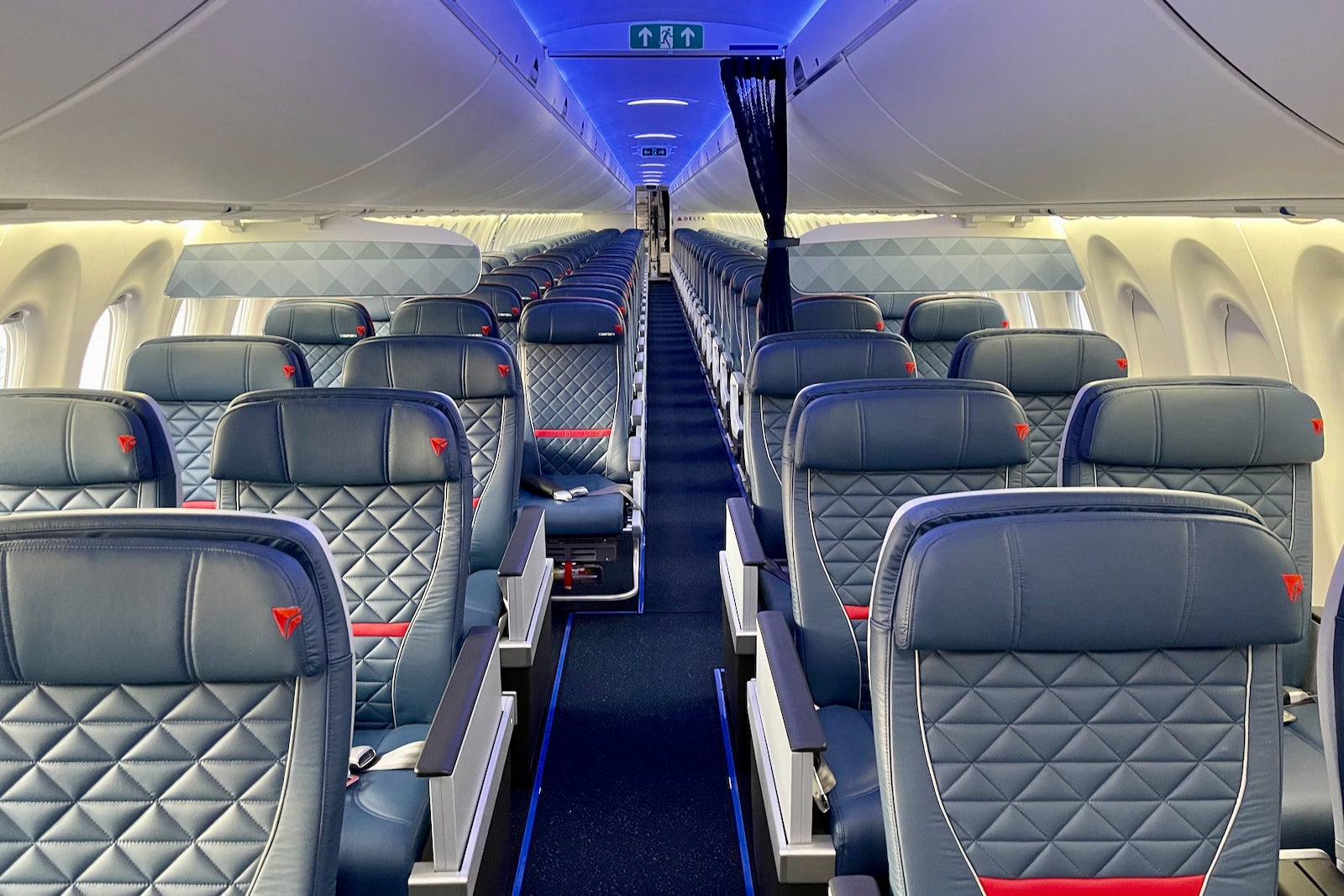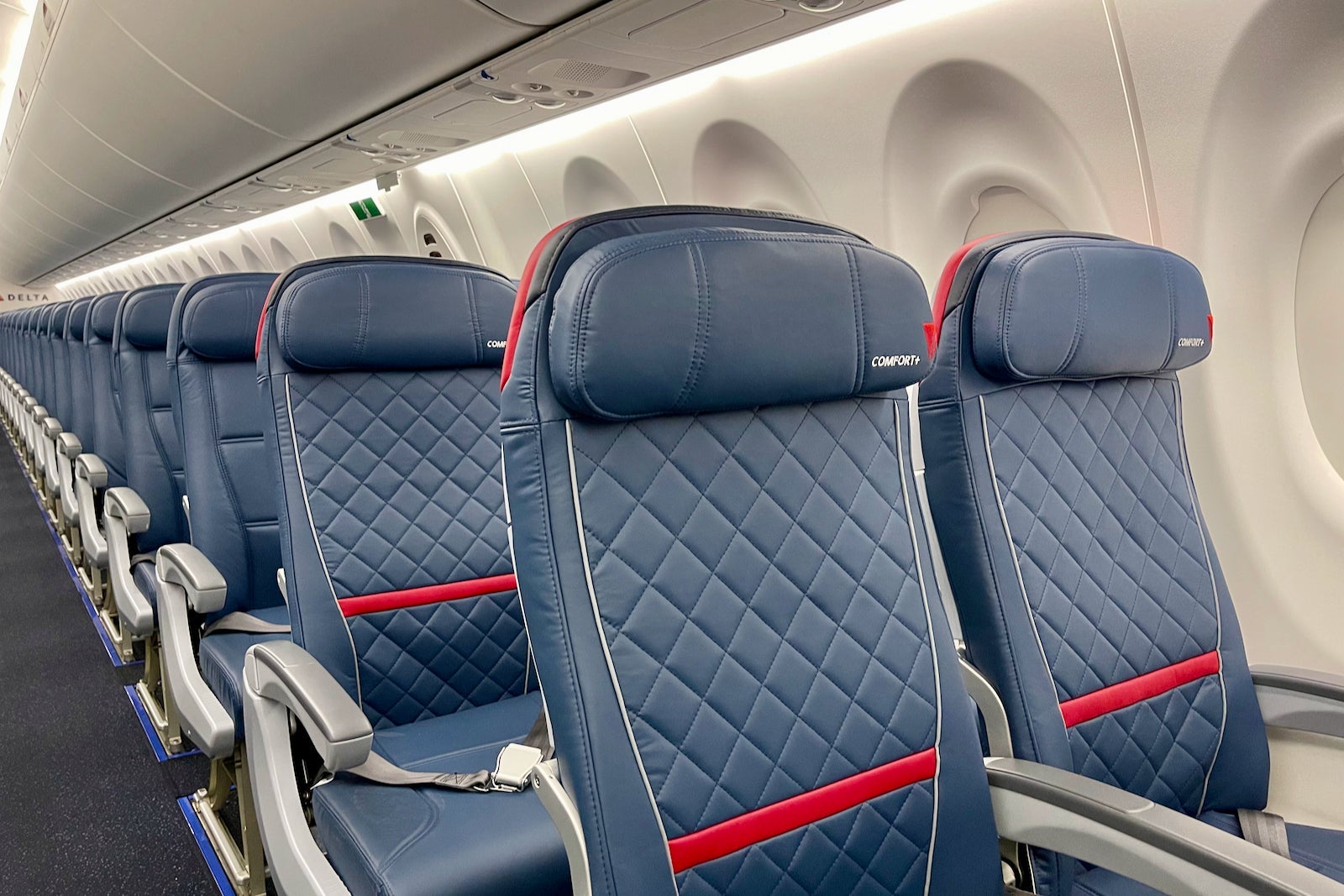 The cabins themselves feature Delta's latest onboard product — snazzy recliners in first, textured leather seats in Comfort+ and well-padded coach seats as well.