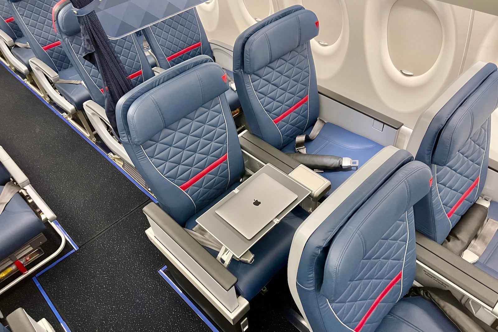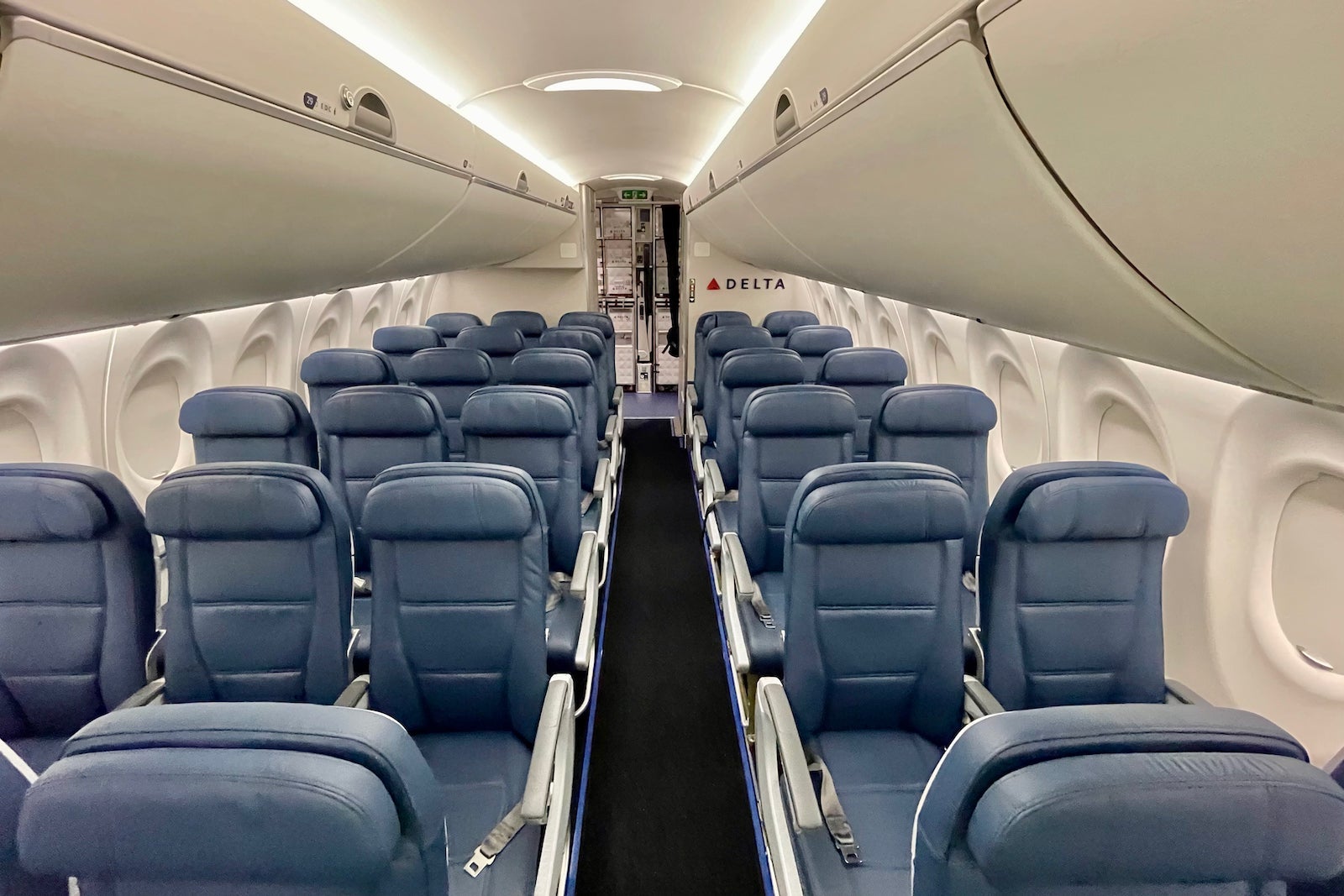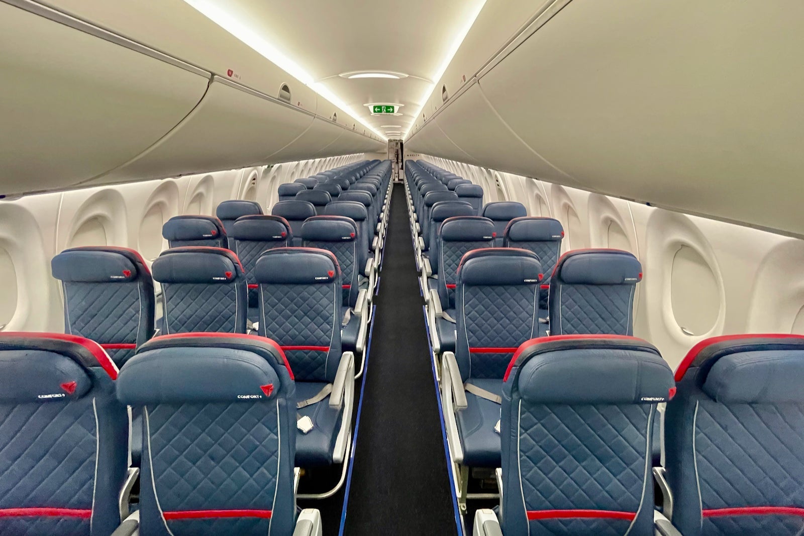 The cabins themselves feature Delta's latest onboard product — snazzy recliners in first, textured leather seats in Comfort+ and well-padded coach seats as well.