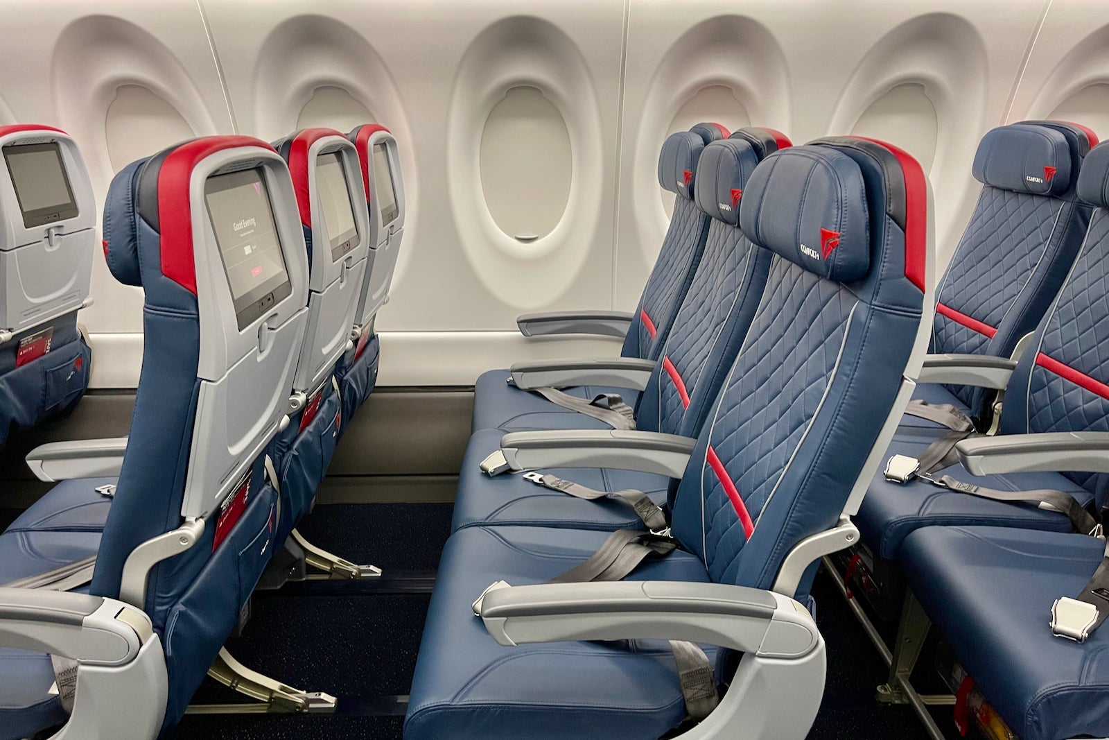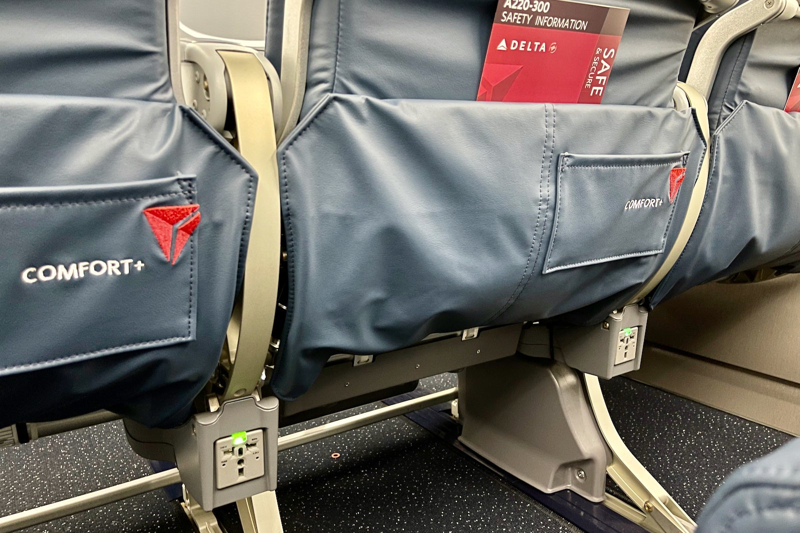 In addition, each recliner has a 13.3-inch personal entertainment monitor, as well as a power outlet and USB port. Delta didn't elect to install USB-C ports that you'll find on Air Canada's A220s.