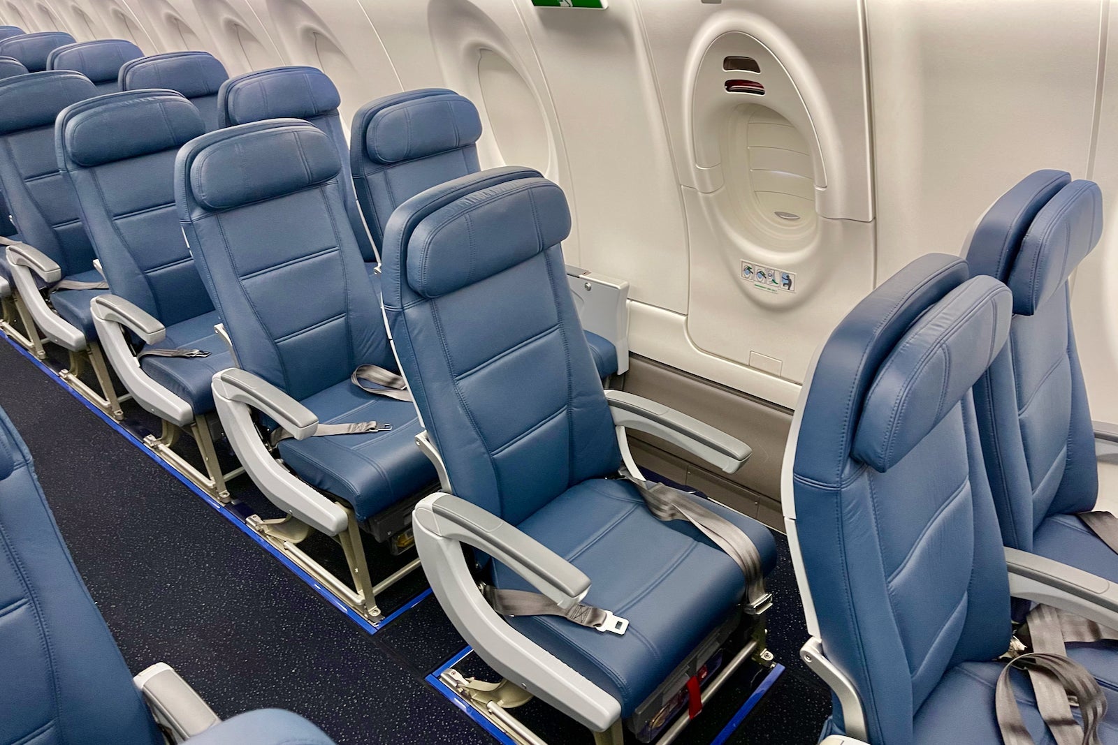 If the windows in row 18 are taken, I'd likely try to snag the single seat — 17B — when I'm flying the A220-300. To me, the biggest downside to the exit row is the significantly smaller windows.
