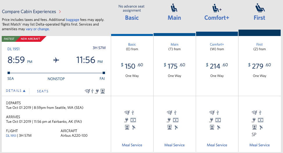 On the SEA-FAI route, Delta's replacing a 160-seat Boeing 737-800 with the A220. While it represents a major upgrade in terms of creature comforts, it's a downgrade in capacity.