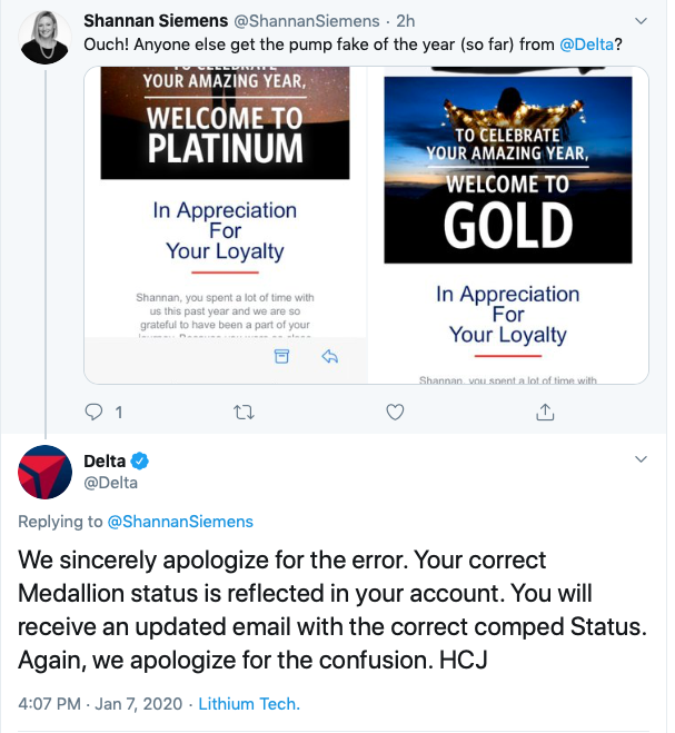 Delta is even apologizing to some users who complained on social media including Shannan Siemens who said in her case, she was awarded Platinum instead of Gold Medallion status.
