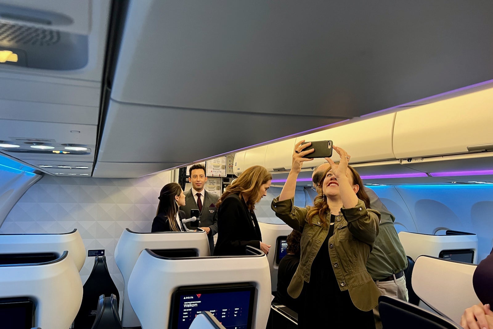 Journalists were busy snapping pictures and videos, and the Delta team regaled each other with stories about the new jet and the improvements.