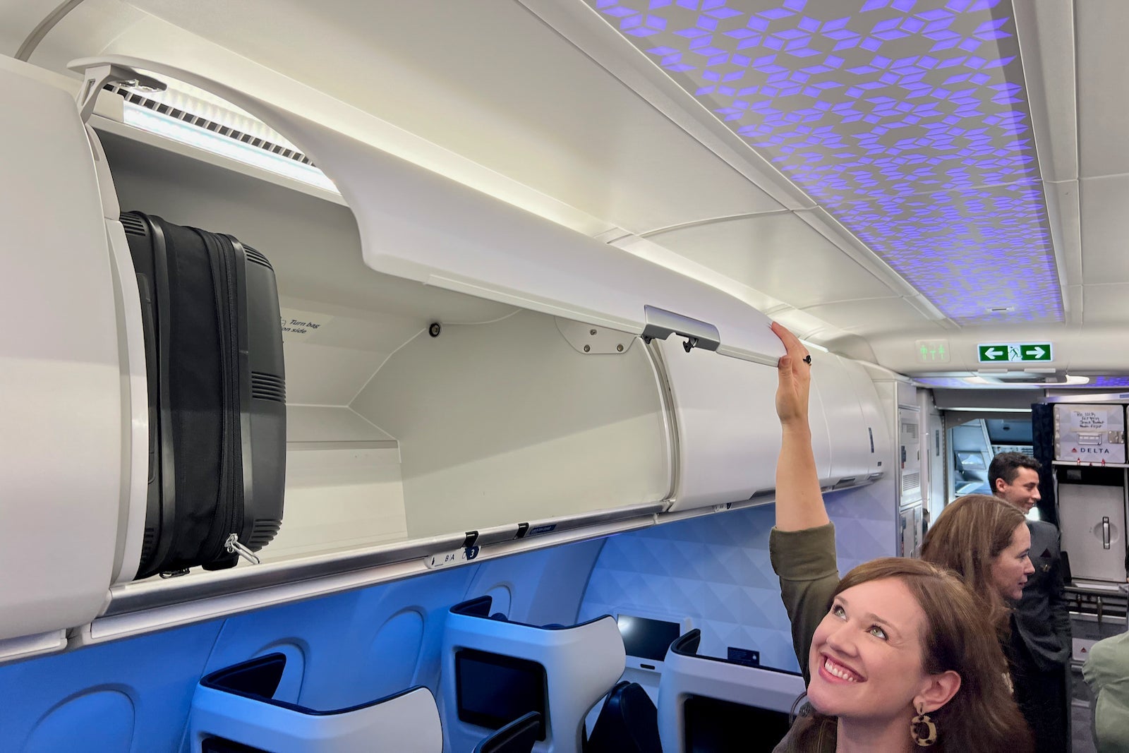 The A321neo also features the Airspace XL overhead bins, which should provide plenty of space for everyone's rollaboards. The media flight wasn't a great test case for these bins, however, since most passengers were doing a day trip with a briefcase or backpack.