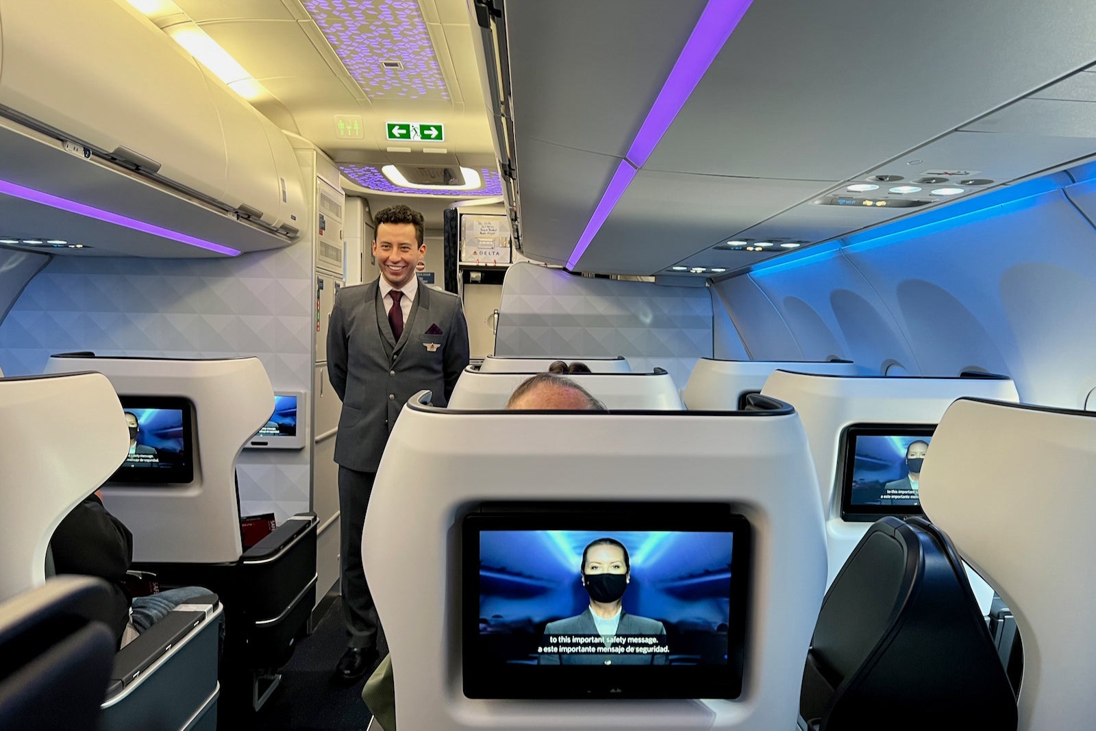 Although we were flying on a non-commercial ferry flight, the airline was obliged to follow FAA guidelines, including screening the safety video, and staff flight attendants (and two pilots), all of whom were incredibly friendly and knowledgeable about the new jet.