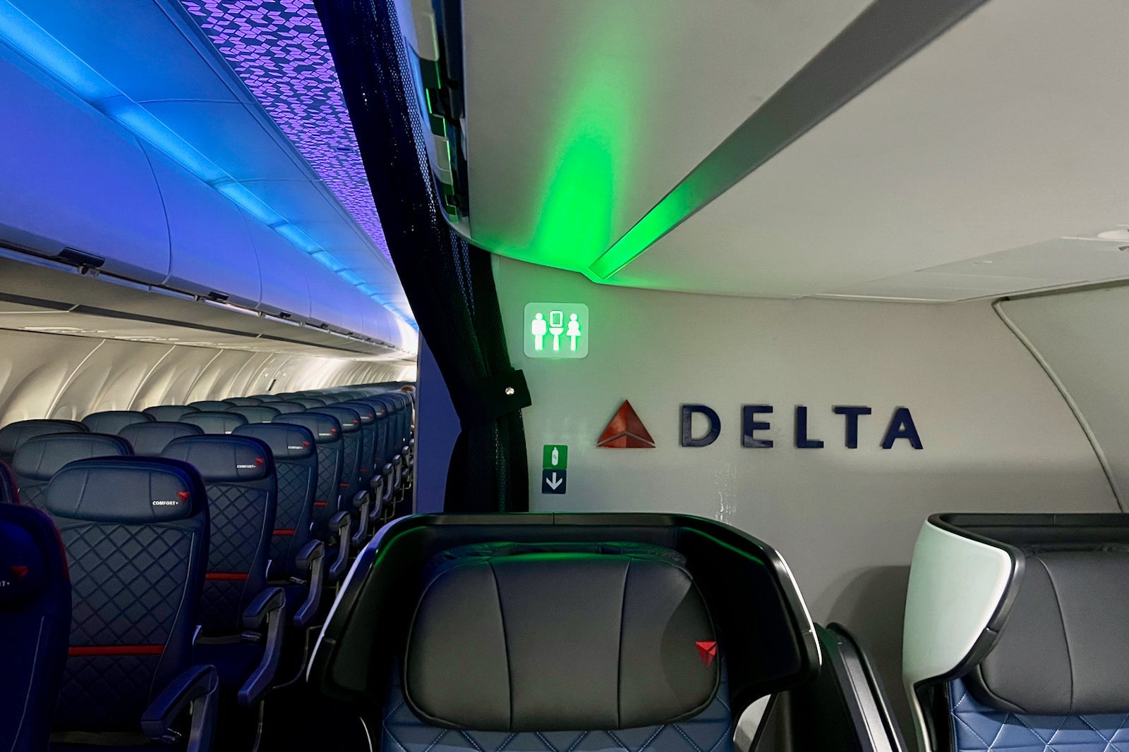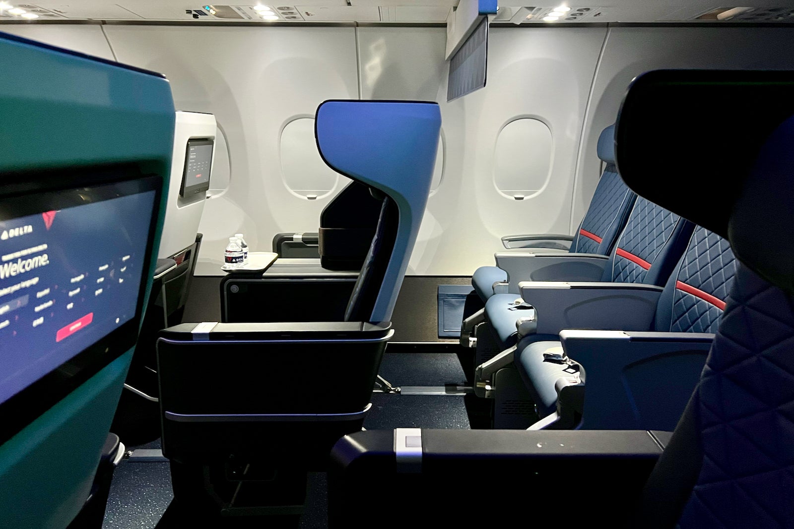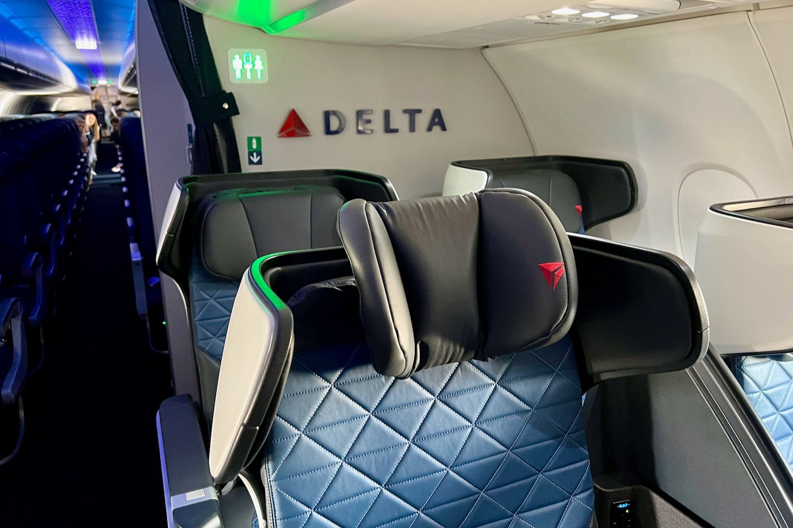 The A321neo is the first jet to feature Delta's futuristic new first-class recliners. Though the plane sports a handful of nose-to-tail enhancements, Delta arranged for each of the journalists to sit in first class to experience the flagship innovation.