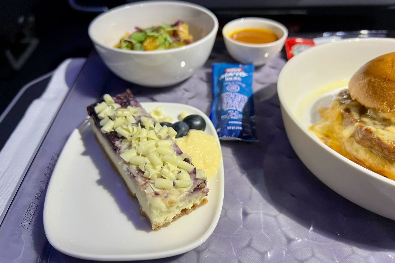 As we passed through 10,000 feet, the lead flight attendant, Felipe, came through the cabin to take meal orders; Delta specially catered some of its most popular new first-class meals for us to try.