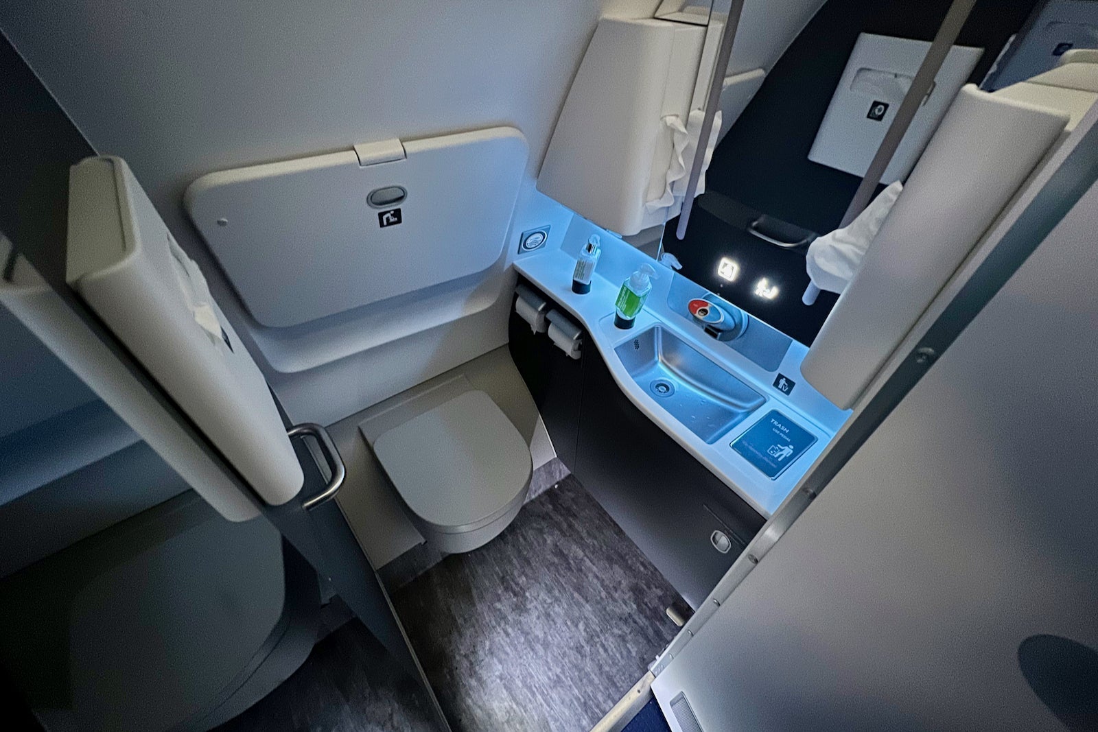Another area that's tight is the lavatory. Other than the one at the front of the first-class cabin, I found the other three bathrooms on the A321neo to be small, but thankfully not nearly as cramped as the tiny bathrooms on the American or United Boeing 737 MAX.